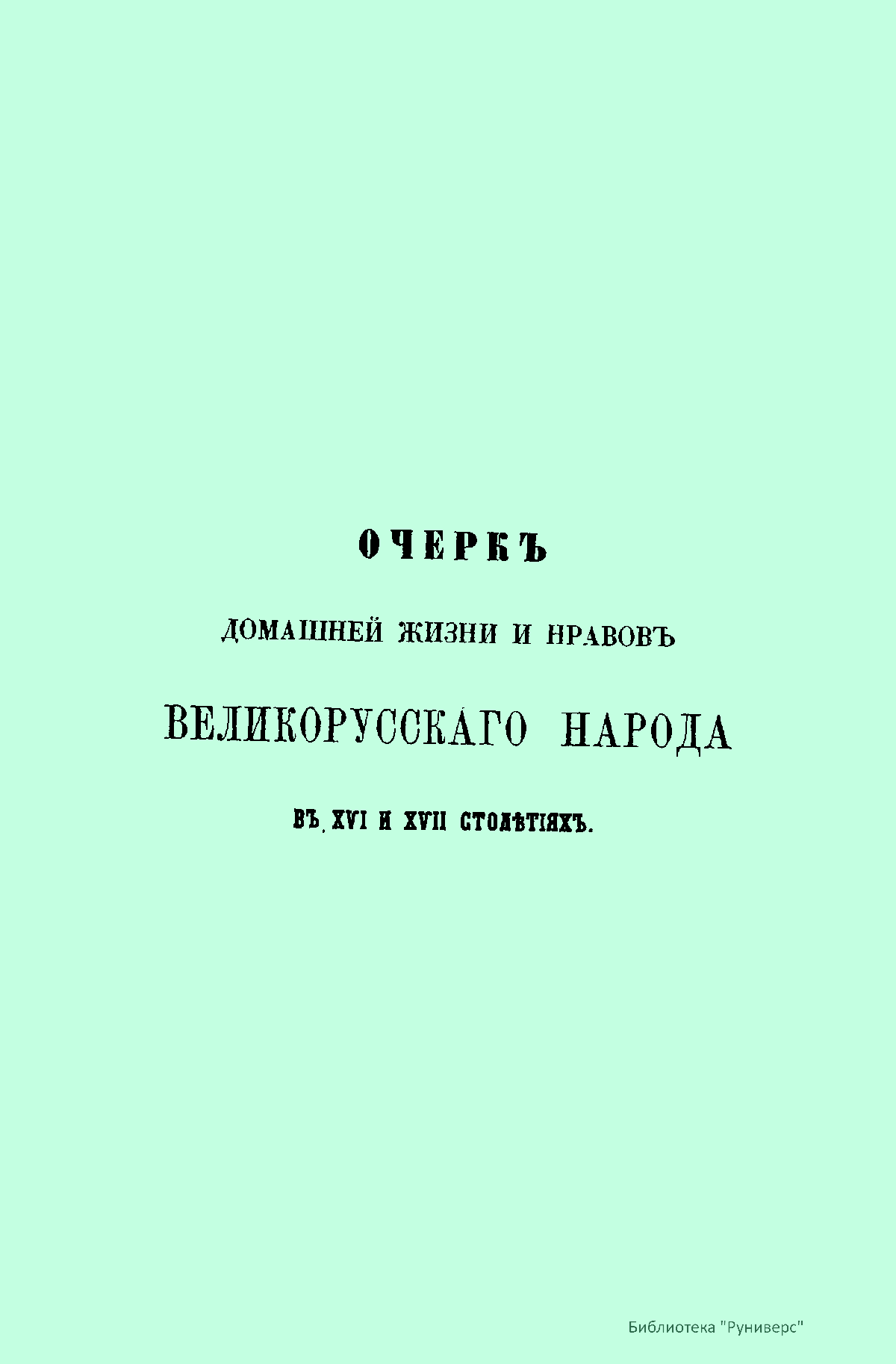 Очерк домашней жизни и нравов Великорусского народа в XVI и XVII столетиях