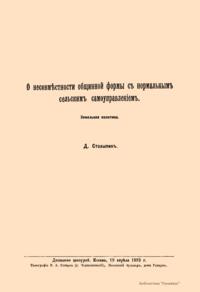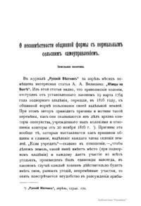 О несовместности общинной формы с нормальным сельским самоуправлением