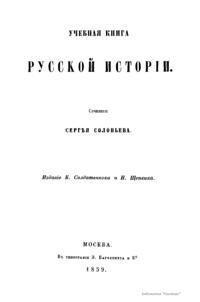 Учебный курс русской истории до царствования императора Александра I. «Соловьев давал слушателю удивительно цельный, стройной нитью проведенныйсквозь цепь обобщенных фактов взгляд на ход русской истории… Настойчиво говорил и повторял он, где нужно, о связи явлений, о последовательности исторического развития, об общих его законах, о том, что называл он необычным словом – историчностью… Чтение Соловьева… не било ни на чувства, ни на воображение, но оно заставляло размышлять». В.О. Ключевский