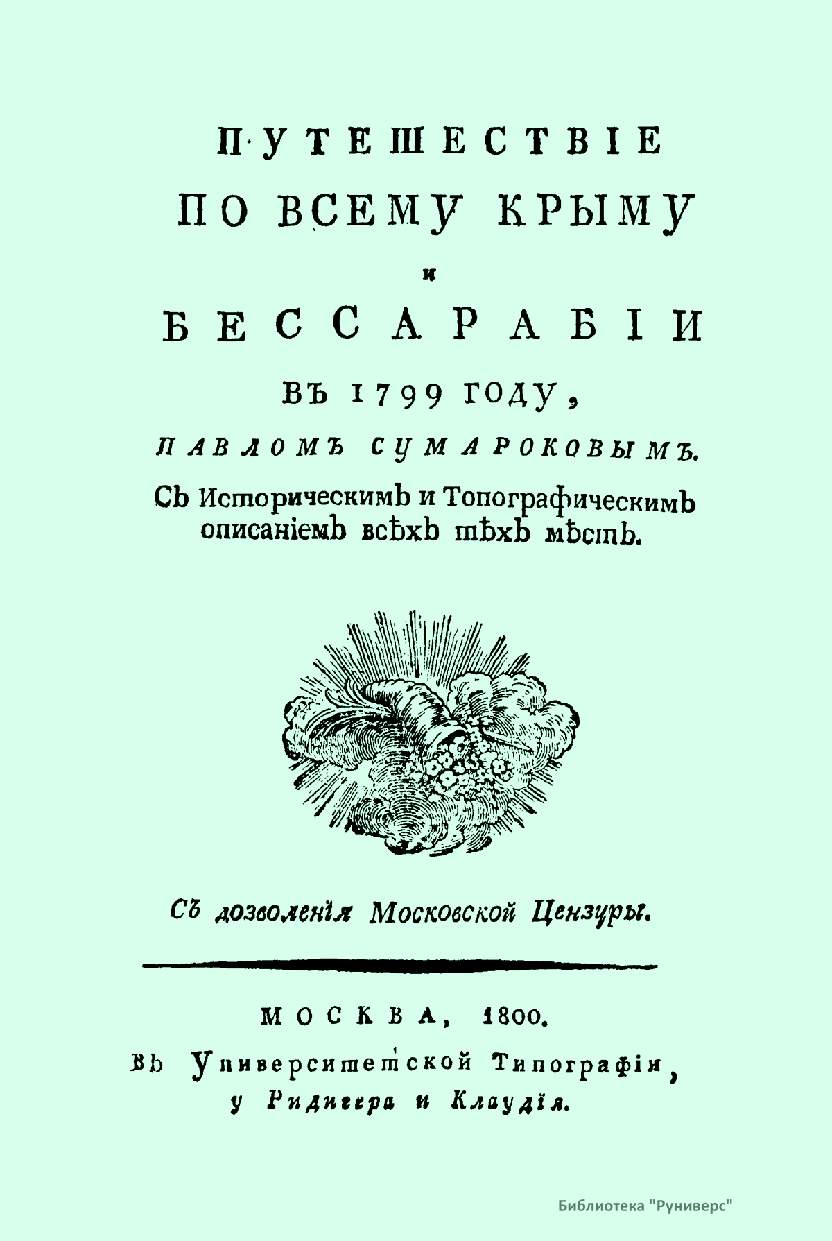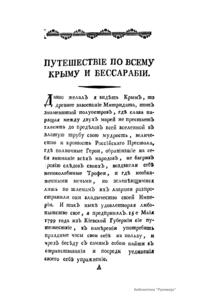 Путешествiе по всему Крыму и Бессарабiи въ 1799 году, Павломъ Сумароковымъ. Съ историческимъ и топографическимъ описанiемъ всѣхъ тѣхъ мѣстъ