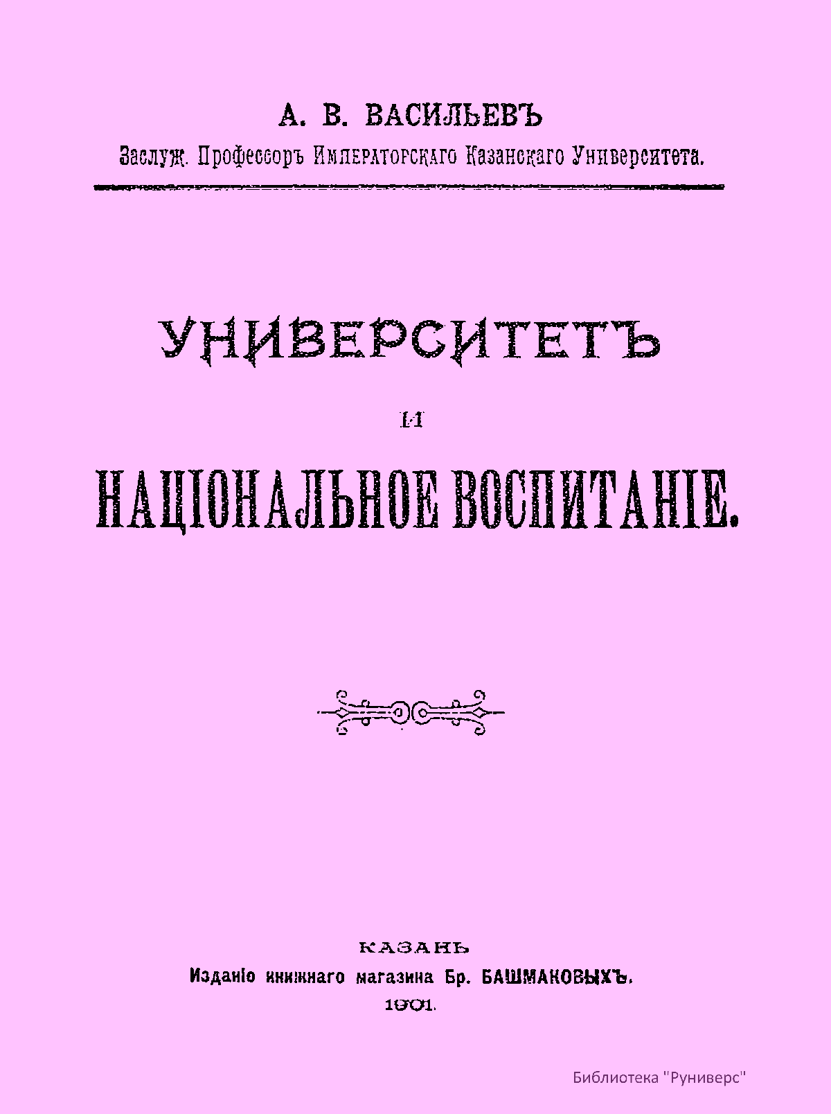 Университетъ и нацiональное воспитанiе. Рѣчь, произнесенная при открытiи Педагогическаго Общества при Императорскомъ Казанскомъ Университетѣ