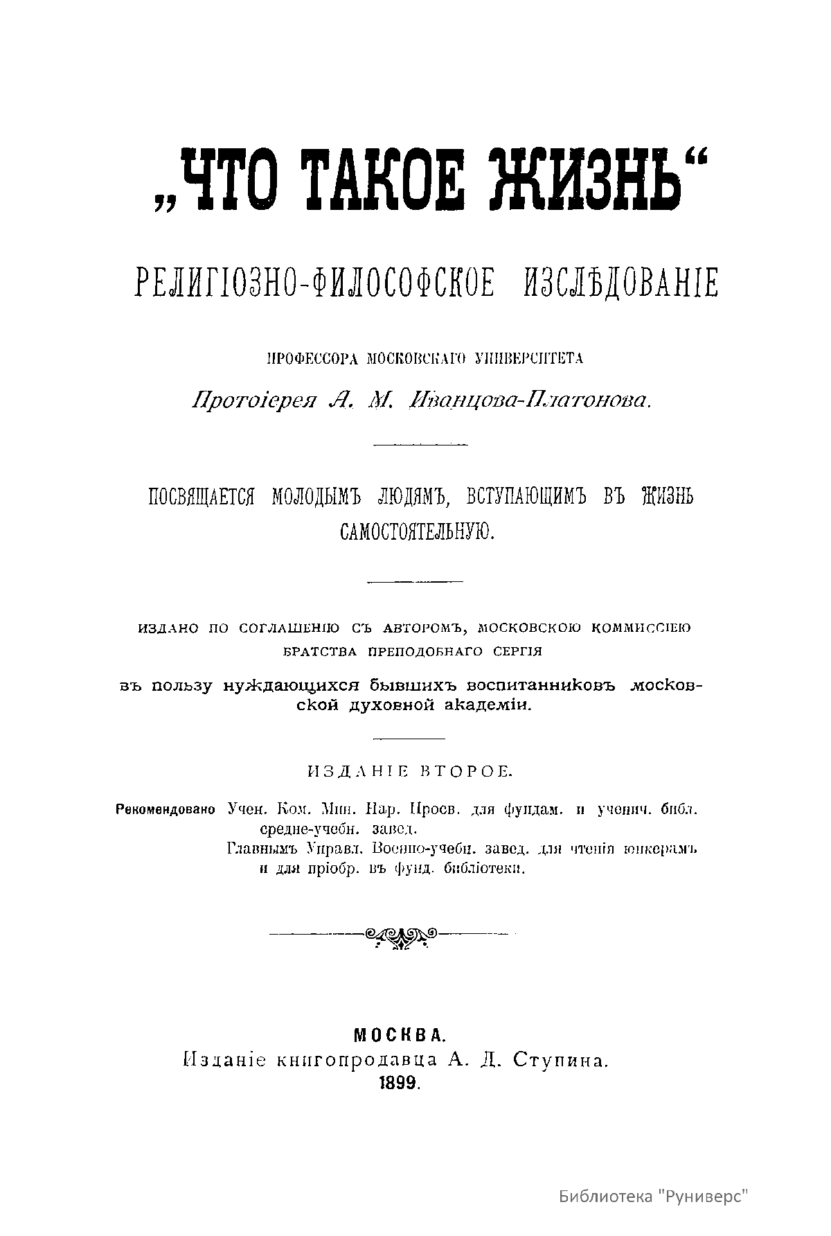 Что такое жизнь. Религiозно-философское изслѣдованiе