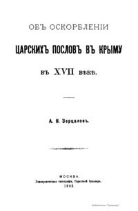 Объ оскорбленiи царскихъ пословъ въ Крыму въ XVII вѣкѣ