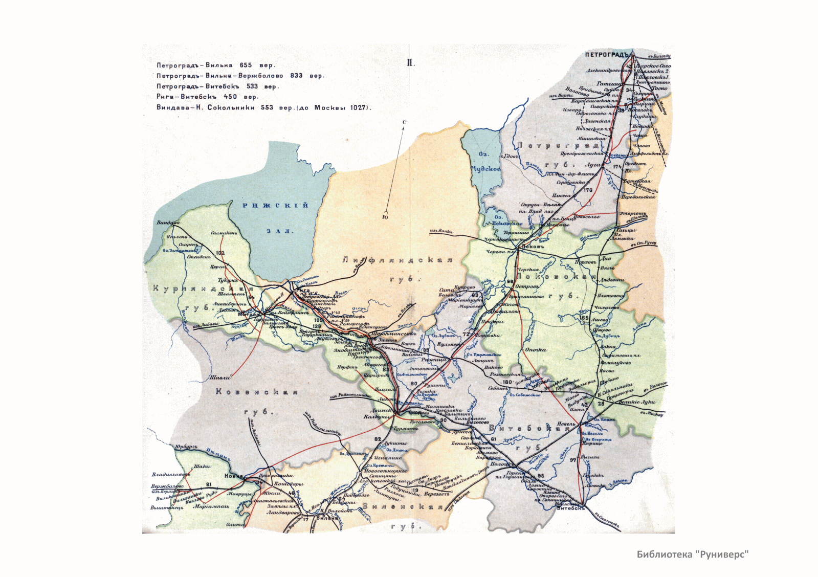 Атлас состоит из 22 карточек карманного формата, на которых нанесены все станции, платформы и разъезды с указанием расстояния в верстах между узловыми пунктами. Показаны пересекающие железные дороги реки, а также шоссе и границы губерний.