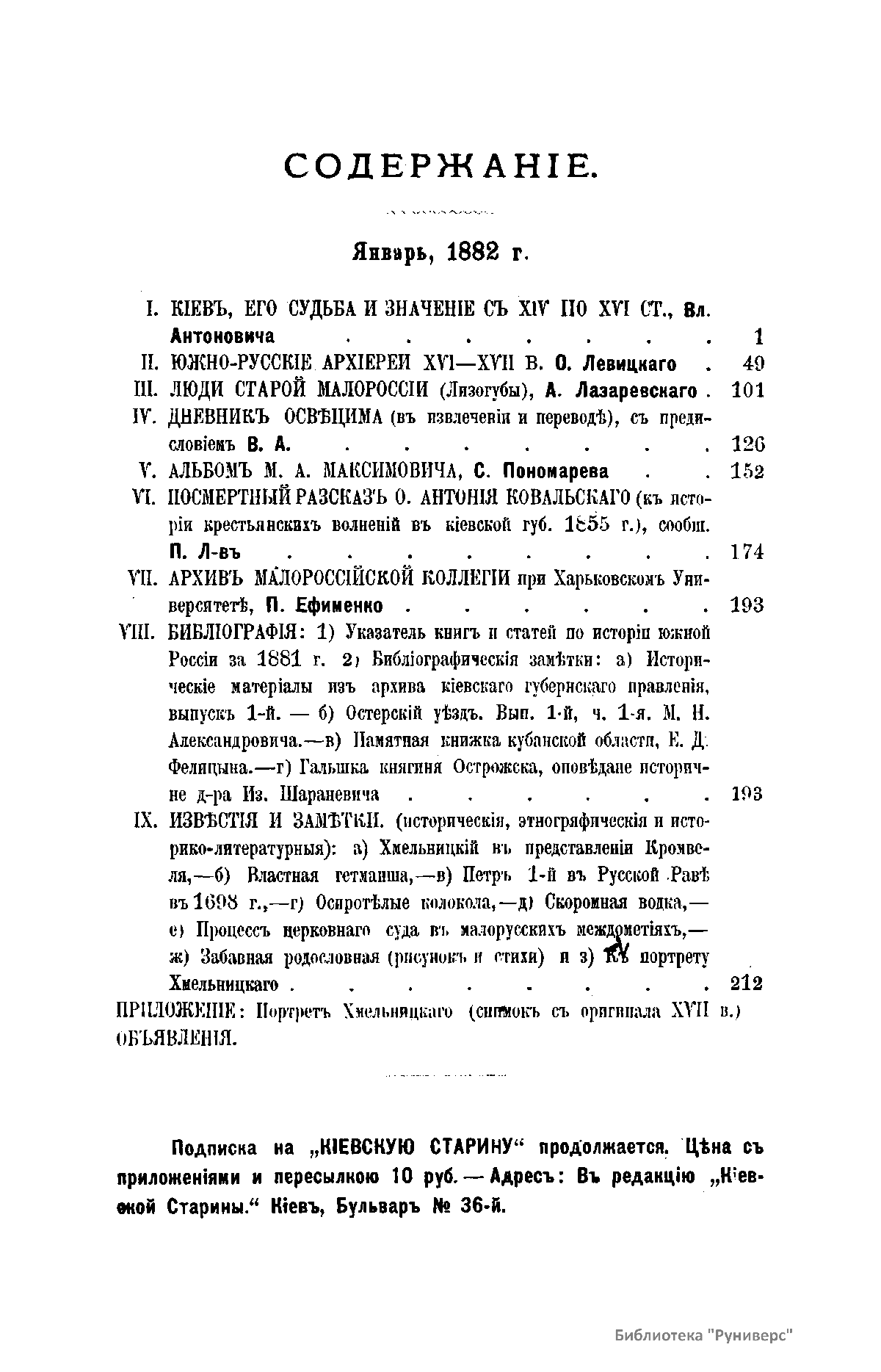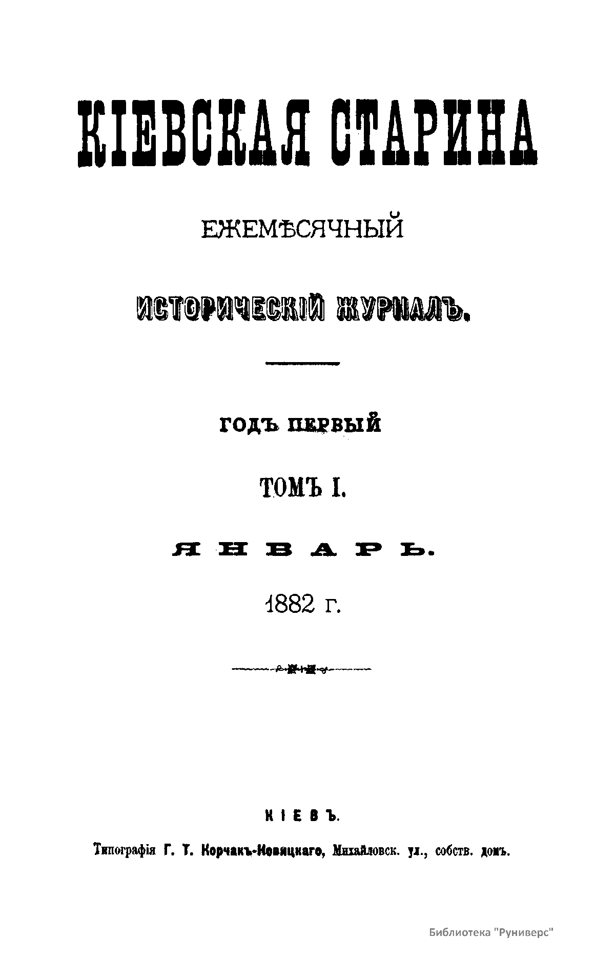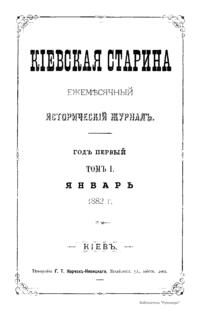 «Киевская старина» - исторический журнал, выходил ежемесячно в Киеве в 1882 – 1906 гг. на русском языке. Основатель и первый редактор – историк Ф.Г. Лебединцев. Публиковал статьи по истории, археологии, этнографии, географии и литературе Украины, документы о видных деятелях украинской культуры (Г.С. Сковороде, И.П. Котляревском, Т.Г. Шевченко и др.) С конца 1890-х гг. в журнале печатались произведения украинских писателей (И. Франко, М. Коцюбинского, Леси Украинки, Панаса Мирного и др.). В журнале принимали участие В.Б. Антонович, Д.И. Багалей, П.С. и А.Я. Ефименко и др. В 1907 г. выходил под названием «Украина» на украинском языке.