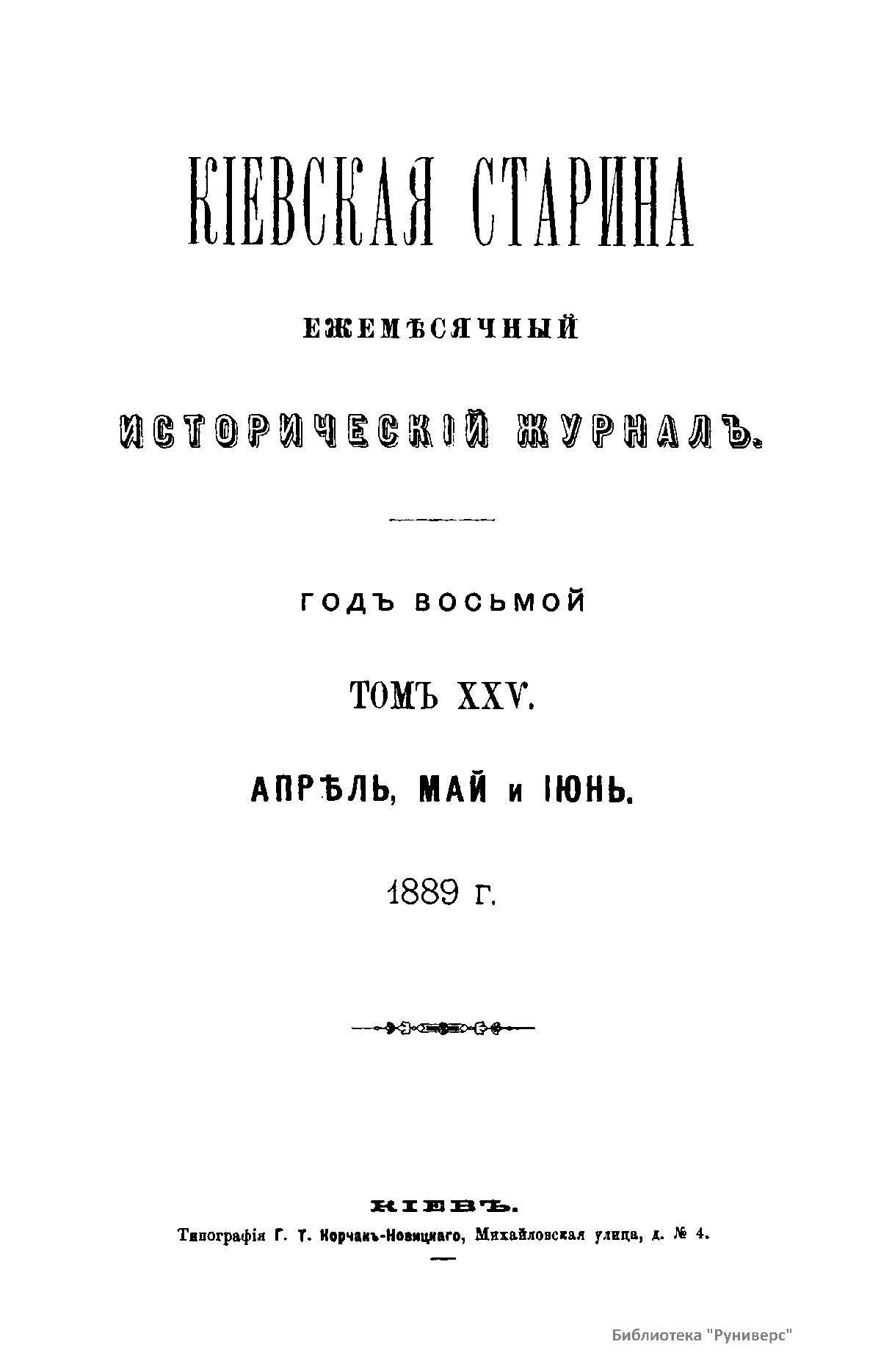 Киевская старина. Год восьмой. Том XXV. Апрель-Июнь 1889 г.