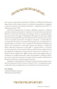 XIII–XVI столетия принципиально изменили карту Восточной Европы. Появление на ее просторах улуса Монгольской империи — Золотой Орды запустило процесс выдвижения новых политических центров. Одним из них стала Москва, но рядом с ней выросла другая Русь — Великое княжество Литовское и Русское, большая часть населения которого называлась «русскими» или «русинами» — но не считала себя «московитами». В средневековой Европе Литва сочетала воинственную центральную власть князей Гедиминовичей с широкими автономными правами отдельных земель и получила уникальный опыт конфессиональной и национальной терпимости. В номере собраны работы исследователей, с разных сторон изучав-ших своеобразие литовской модели государственности и факторы, способствовавшие дивергенции систем общественно-политического устройства двух крупнейших государств Восточной Европы — Великого княжества Литовского и Московского царства. Редакция «Исторического вестника» предоставила возможность высказать свои позиции не только российским историкам, но и их коллегам с Украины, Белоруссии, Литвы и Польши — тех стран, которые считают себя преемниками средневековой державы Гедиминовичей. А. Дубонис (Литва) показал, как грабительские походы литовских дружин превратились в завоевание соседних земель, и выделил две различные модели литовской экспансии — военную и мирную. Статья С.В. Полехова (Россия) посвящена восстанию в Смоленске в 1440 г. в контексте в целом успешного процесса интеграции Смоленщины: к началу XVI в. смоленские бояре, мещане и даже «черные люди» прочно ассоциировали себя с Великим княжеством Литовским. Е.В. Русина (Украина) попыталась оценить, как отвечает современная историография на вопрос: почему на руинах Древнерусской державы одновременно возникли столь непохожие друг на друга великие княжества Московское и Литовское, имевшие разную логику исторического развития? Д. Шульц и Р. Яворский (Польша) представили обзор трудов польских историков, посвященных ключевым в польско-литовских отношениях событиям — Кревскому акту 1385 г. и Люблинской унии 1569 г. А.И. Груша (Белоруссия) постарался обобщить сведения и выявить специфику (децентрализацию и подвижность) различных видов архивов Великого княжества Литовского, рассеянных ныне по архивохранилищам нескольких государств. А.В. Казаков (Белоруссия) проследил судьбу московского выходца XVI века И.Т. Юрлова, чей жизненный путь можно считать примером успешной интеграции эмигранта в социум Великого княжества Литовского в условиях благоприятного для москвичей «социокультурного климата» этого государства. В.А. Воронин (Белоруссия) оценил, как развивались отношения между католиками и православными в Великом княжестве в конце XIV — середине XVI в., и показал, что католической элите не удалось добиться абсолютного превосходства. До серьезных конфликтов на религиозной почве дело не доходило — в обществе были выработаны эффективные механизмы разрешения возникавших на конфессиональной почве противоречий. Д. Шульц (Польша) изучил влияние московско-литовских войн на процесс объединения Великого княжества с королевством Польским. Завершает номер рецензия С.В. Полехова на последнее издание документов Городельской унии Литвы и Польши 1413 г., посвящённая оценке реальных мер, направленных на интеграцию восточ