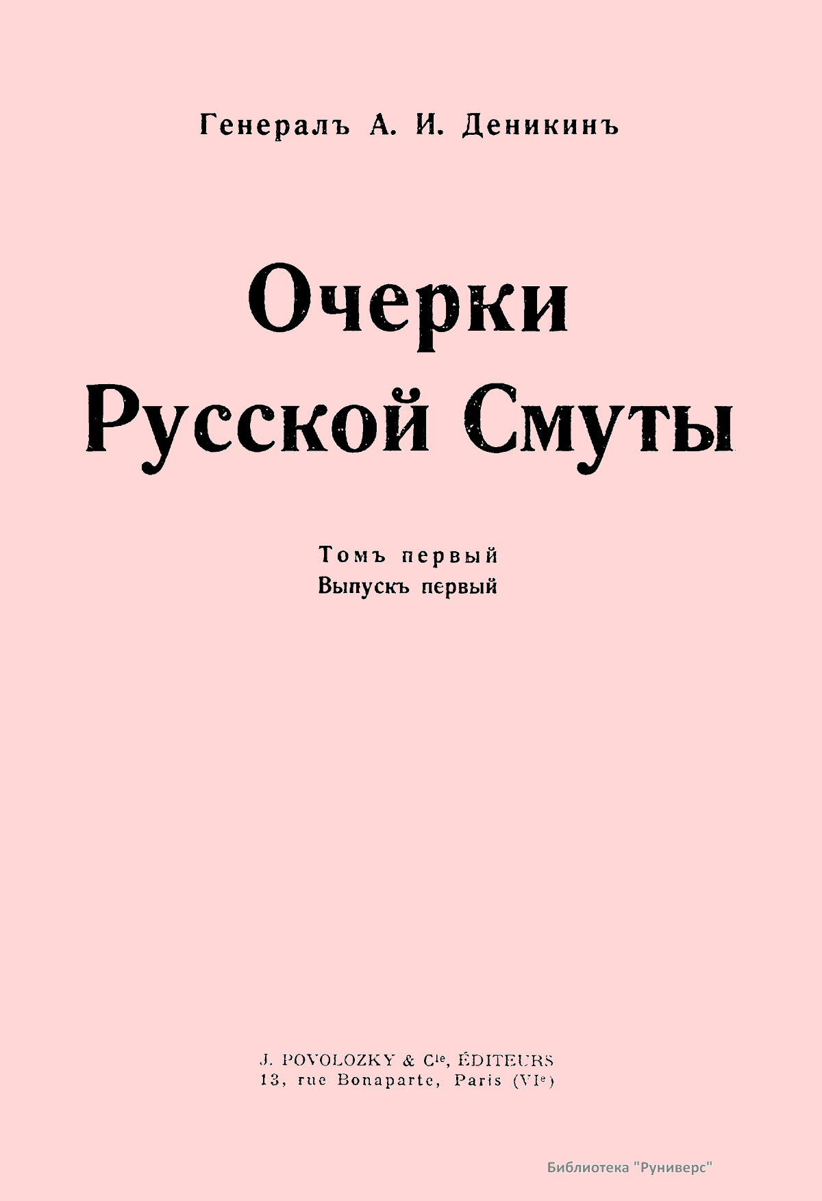 Очерки Русской смуты. Томъ первый. Выпускъ первый. Крушенiе власти и армiи. Февраль-Сентябрь 1917