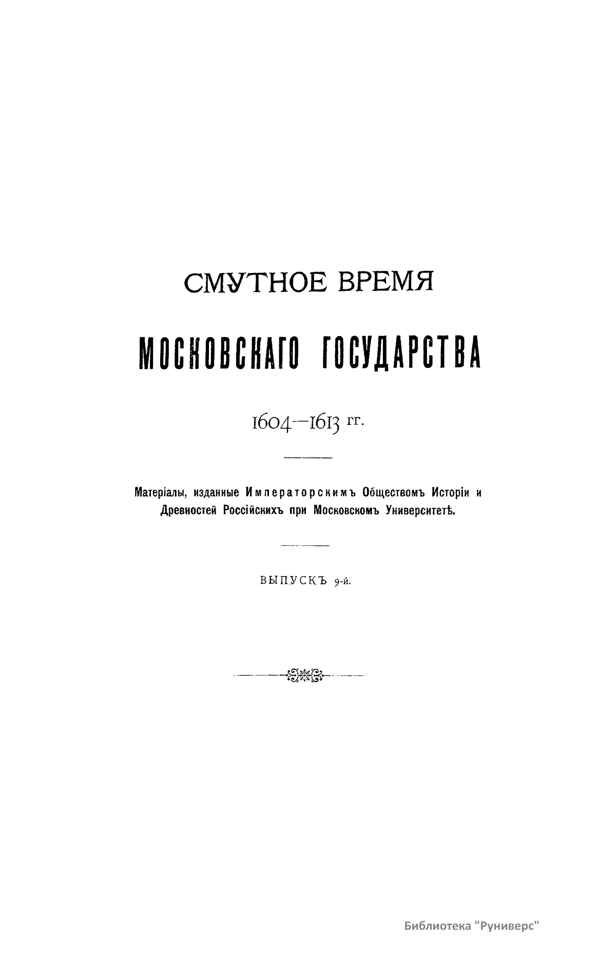 Смутное время московского государства. 1604-1613 гг. Выпуск 9-й