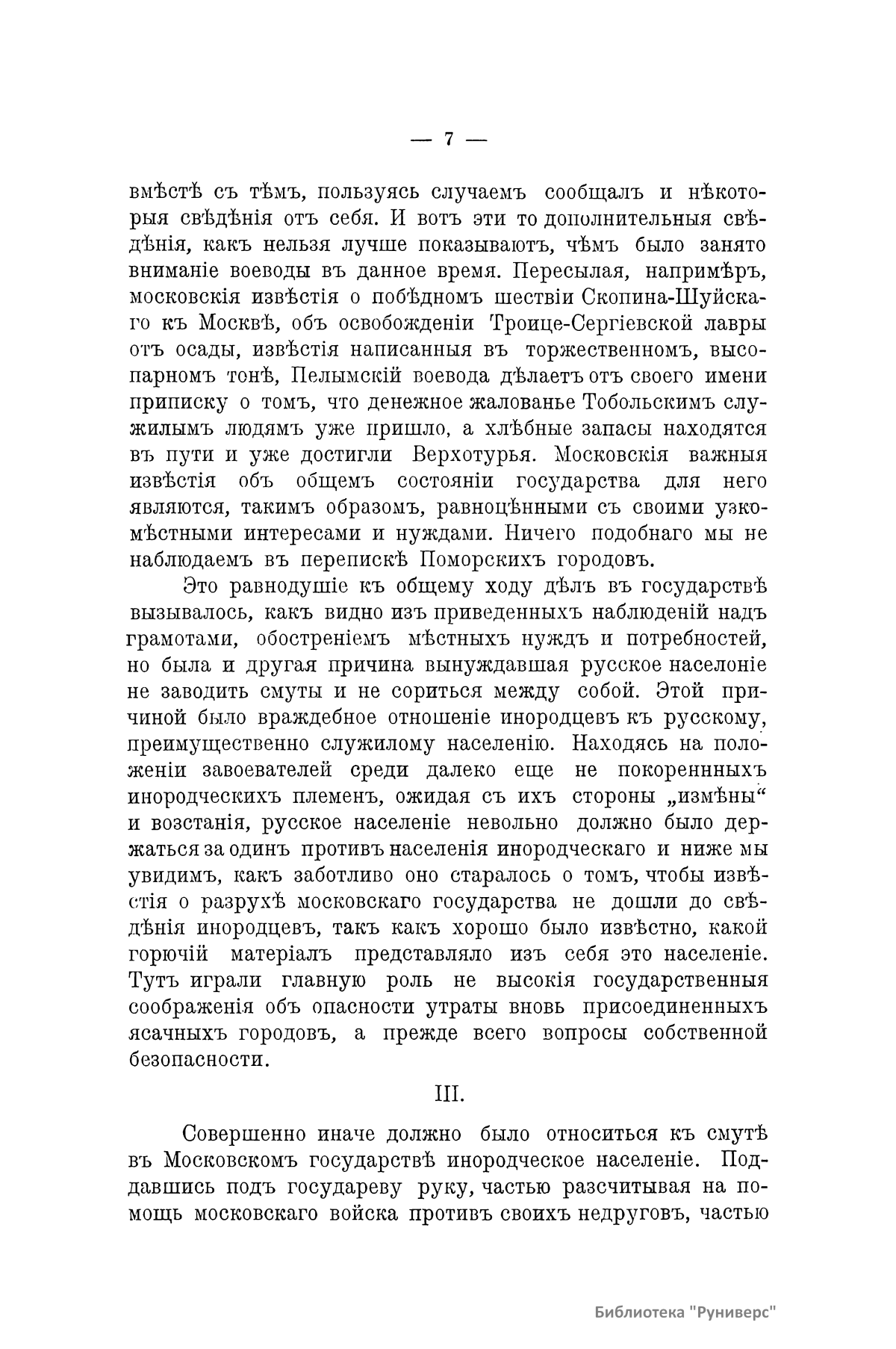 В брошюре описана жизнь окраины России, где события Смутного времени возбудили среди инородцев надежду на свержение русского владычества. Задачей инородцев было «чтобы быть им себе царством, как было при Кучуме царе». Под Смутным временем подразумеваются события, происходившие в России от смерти Ивана IV Васильевича Грозного (1584) до воцарения на русском престоле Михаила Федоровича Романова.