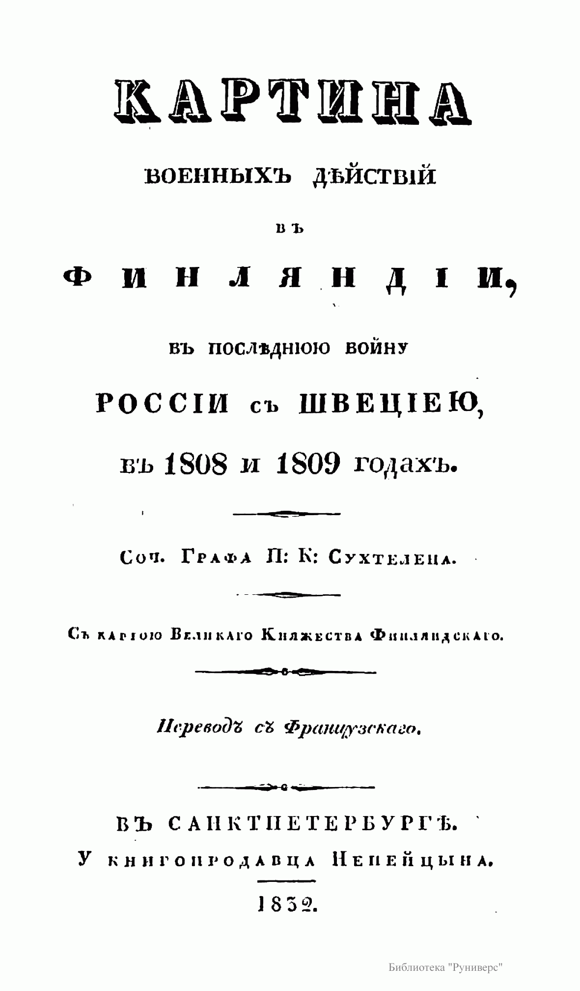 Картина военныхъ дѣйствiй въ Финляндiи, въ послѣднюю войну Россiи с Швецiею, въ 1808 и 1809 годахъ