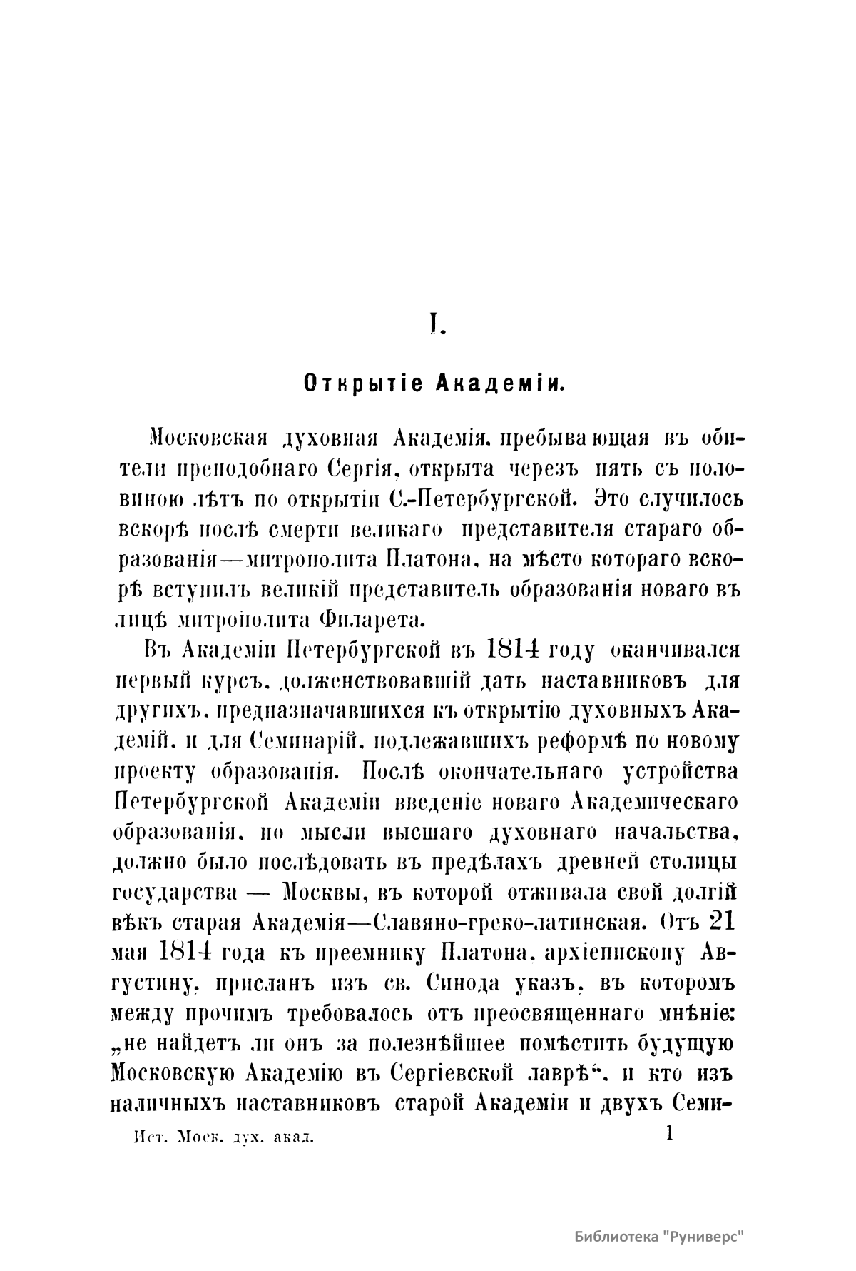 Исторiя московской духовной академiи до ея преобразованiя (1814-1870)