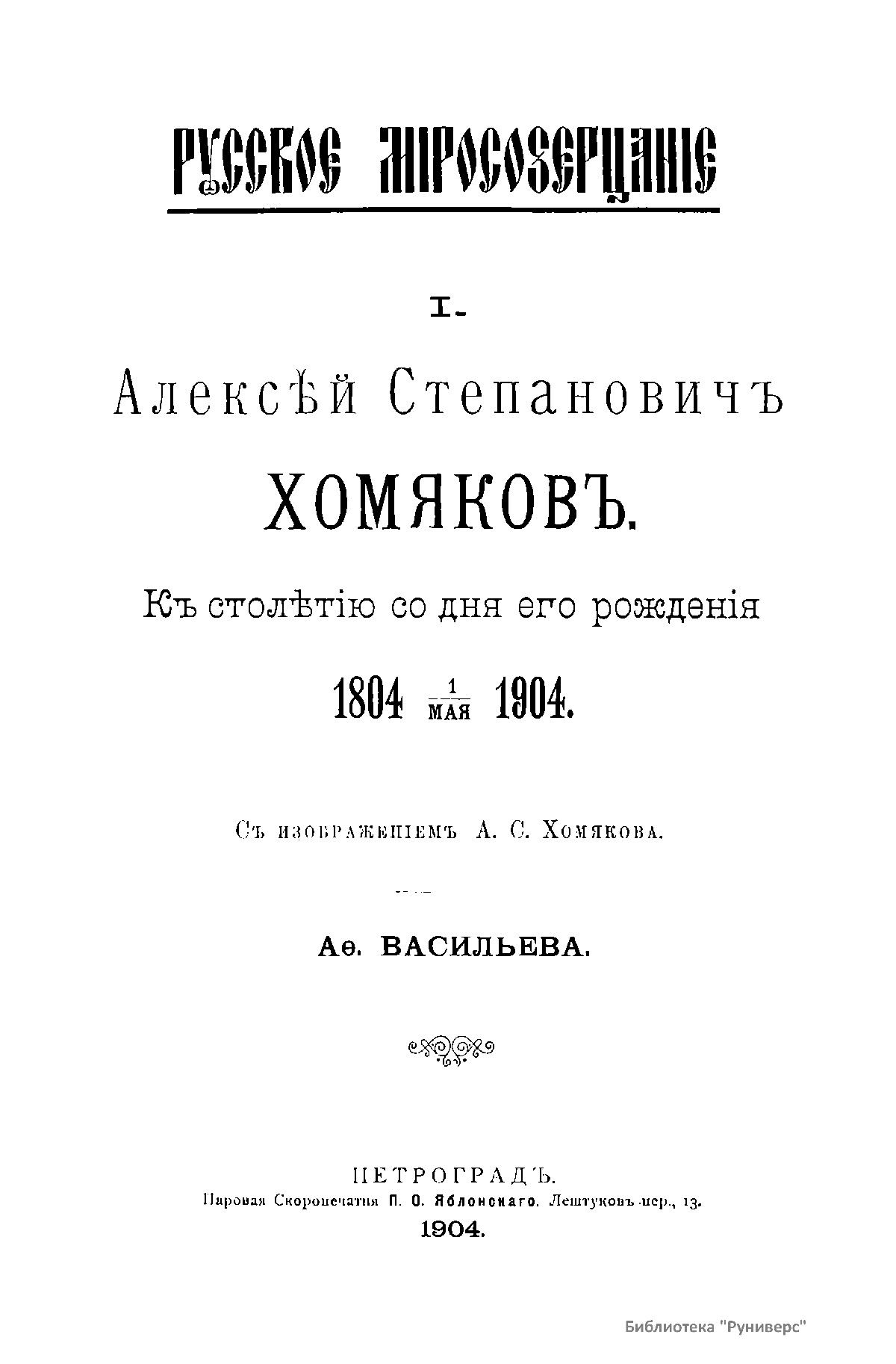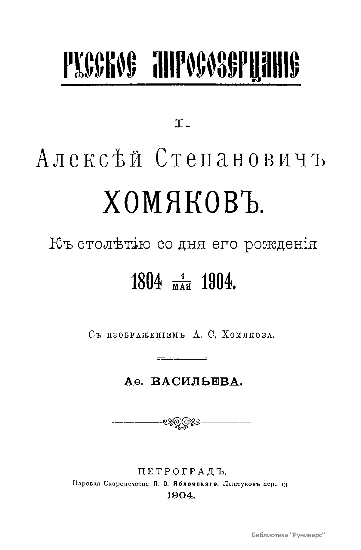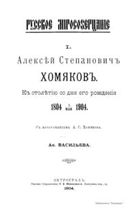 Алексѣй Степановичъ Хомяковъ. Къ столѣтию со дня его рожденiя 1 мая 1804 - 1904