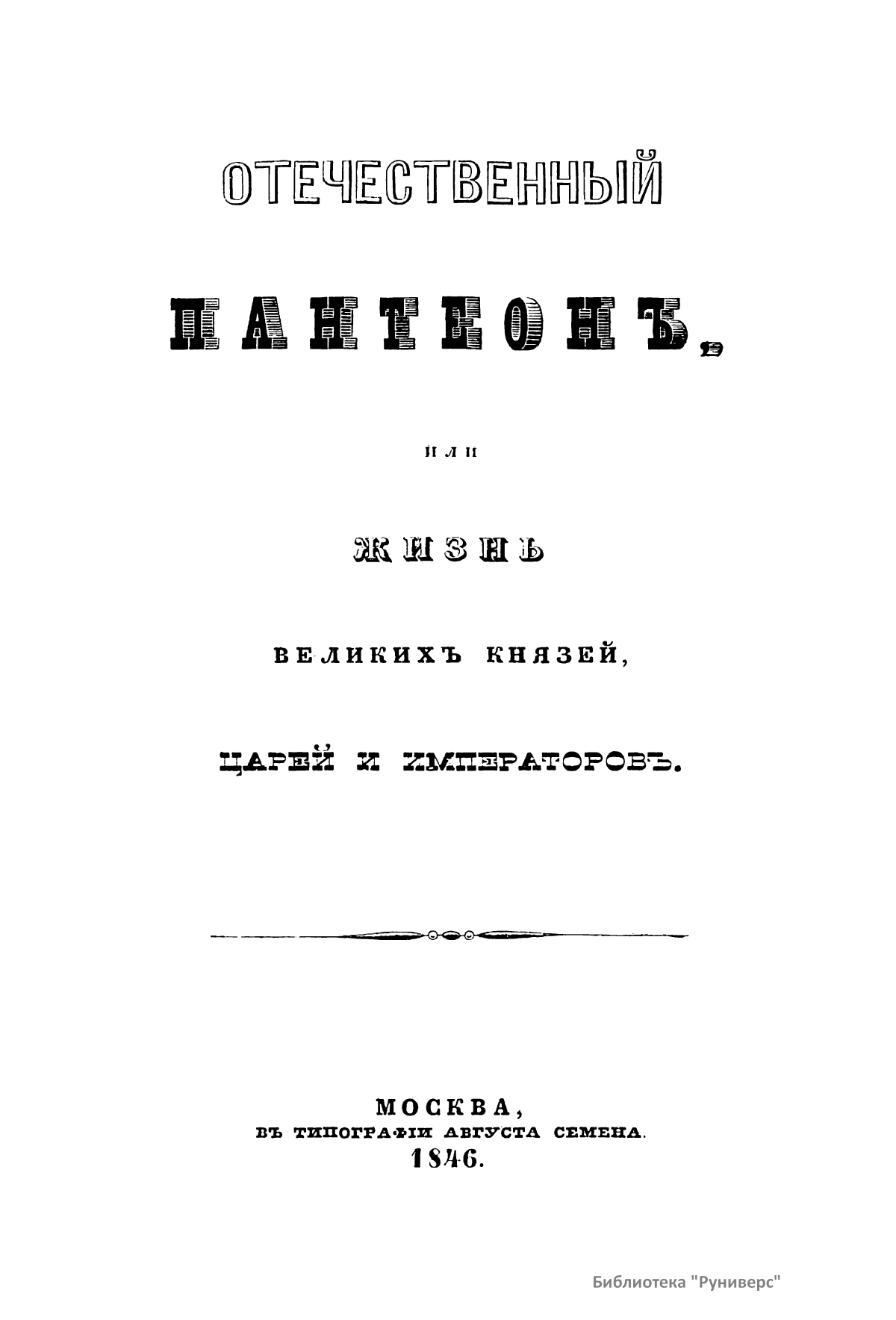 Отечественный пантеонъ, или жизнь великихъ князей, царей и императоровъ
