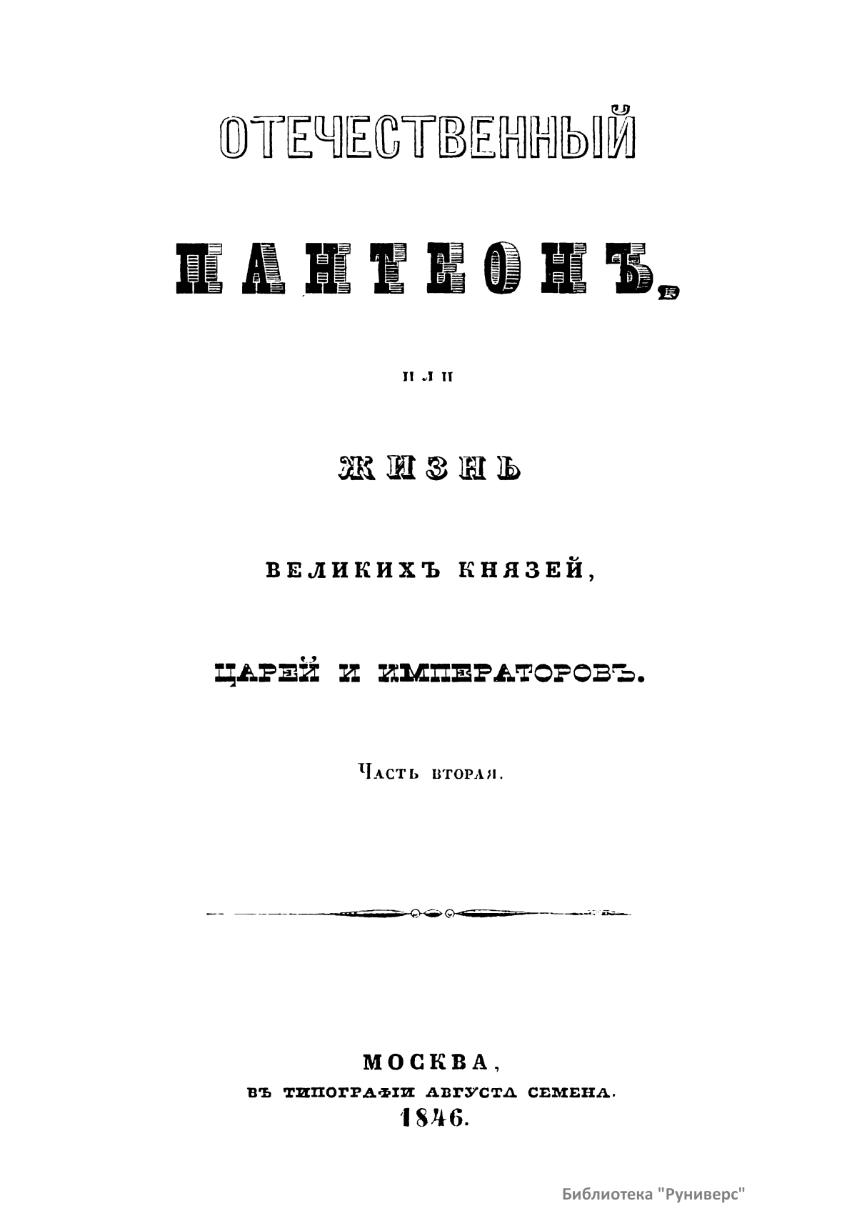 Отечественный пантеонъ, или жизнь великихъ князей, царей и императоровъ. Часть вторая
