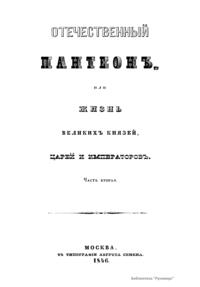 Отечественный пантеон, или жизнь великих князей, царей и императоров. Часть вторая