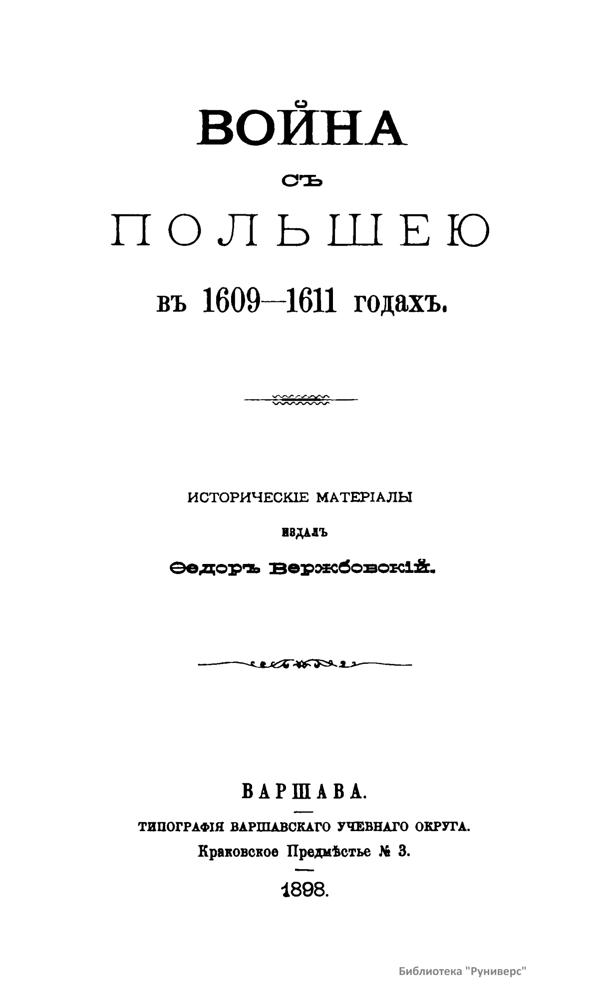 Выпуск III. "Смутное время" в современной ему польской литературе. Часть I-ая, 1605-1607