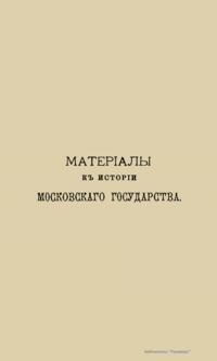 Материалы к истории московского государства в XVI и XVII столетиях. Выпуск II. Война с Польшей в 1609-1611 годах