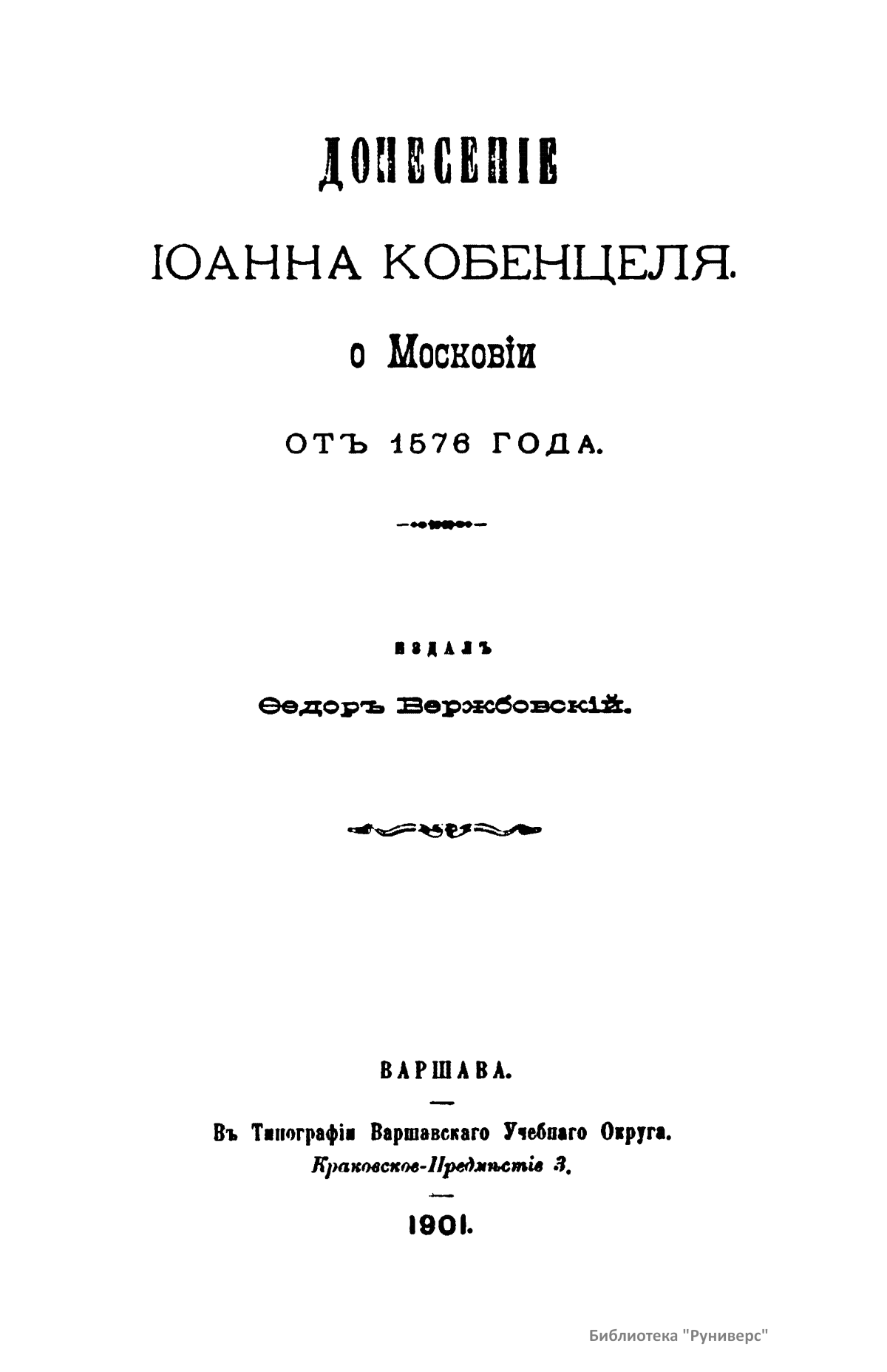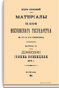 Материалы к истории московского государства в XVI и XVII столетиях. Выпуск IV. Донесение Иоанна Кобенцеля