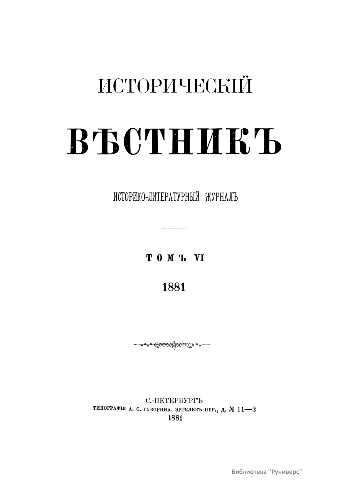 Исторический вестник. Историко-литературный журнал. Том VI