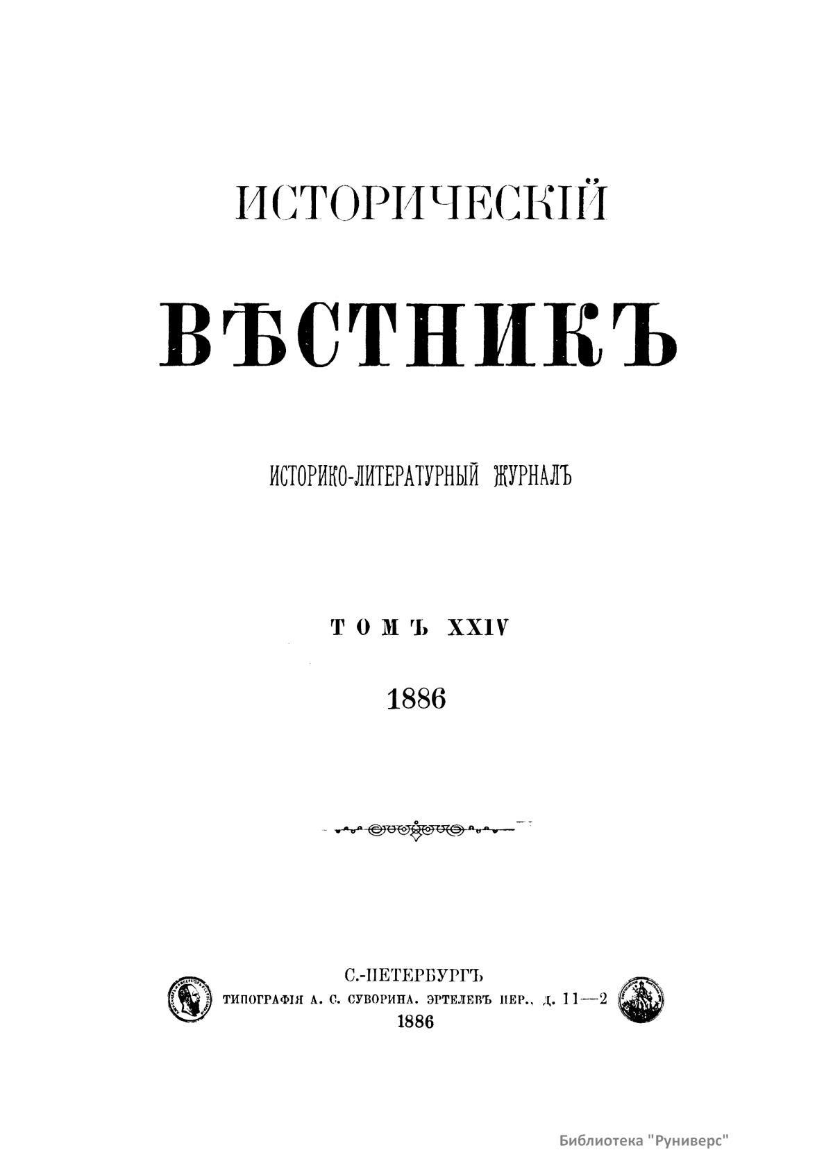 Исторический вестник. Историко-литературный журнал. Том XXIV