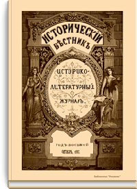 «Исторический вестник» - русский ежемесячный историко-литературный журнал. Издавался в Санкт-Петербурге с 1880-го по 1917 г. Журнал был основан А.С. Сувориным и С.Н. Шубинским с целью «знакомить читателей в живой, общедоступной форме с современным состоянием исторической науки и литературы в России и Европе». Вышло 150 тт. Каждый том состоял из трёх ежемесячных выпусков, имел свою нумерацию страниц, оглавление, список иллюстраций. Журнал приобрёл устойчивую популярность среди читателей, заняв прочное место в «триумвирате» русских исторических журналов наряду с «Русским архивом» и «Русской стариной». опережая их по количеству подписчиков. Отличием «Исторического вестника» было то, что он не помещал на своих страницах необработанных, сырых материалов. С другой стороны, журнал приближался по своему типу к журналам общелитературного образца, сочетая в себе коммерческий успех и доступное изложение материала.