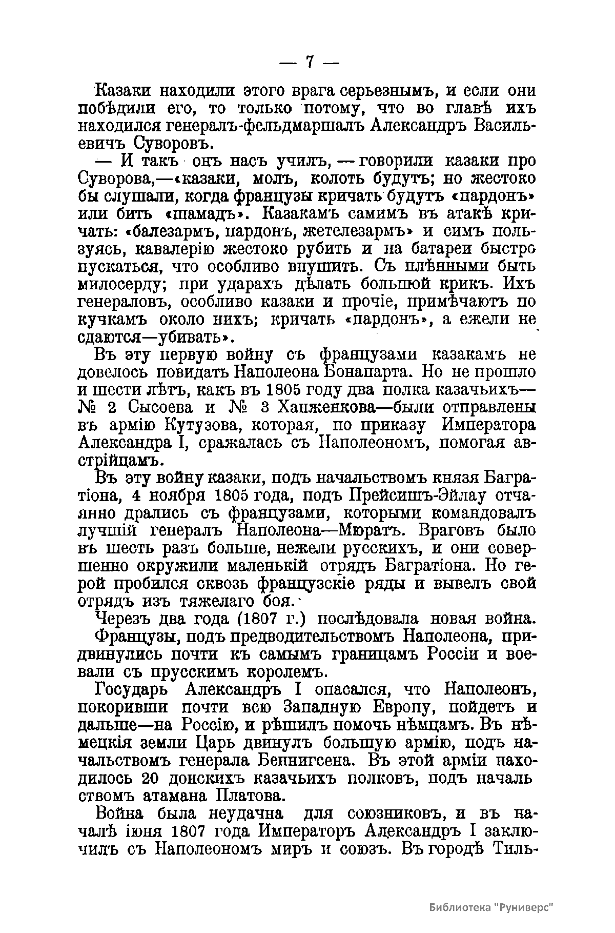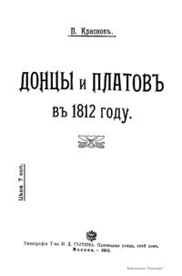 В книге изложена биография Платова М.И., подробно описано его участие в войне 1812 г. Платов Матвей Иванович (1751 – 1818) – граф (с 1812 г.), войсковой атаман Донского казачьего войска, генерал от кавалерии. Сподвижник А.В. Суворова. В Отечественную войну 1812 г. и в 1813 – 1814 гг. успешно командовал донским казачьим корпусом. В Бородинском сражении совершил рейд в тыл противника.