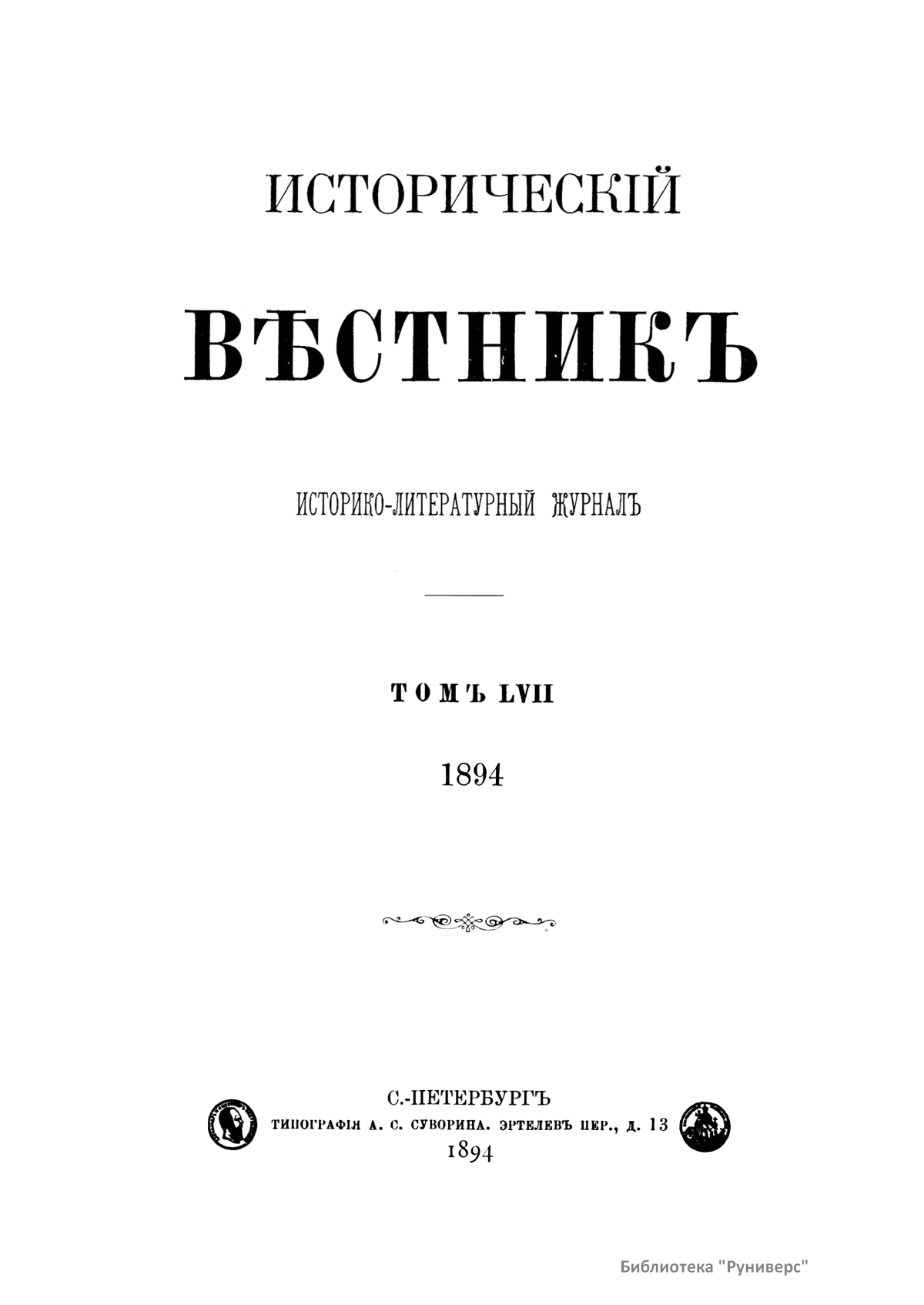 Исторический вестник. Историко-литературный журнал. Том LVII