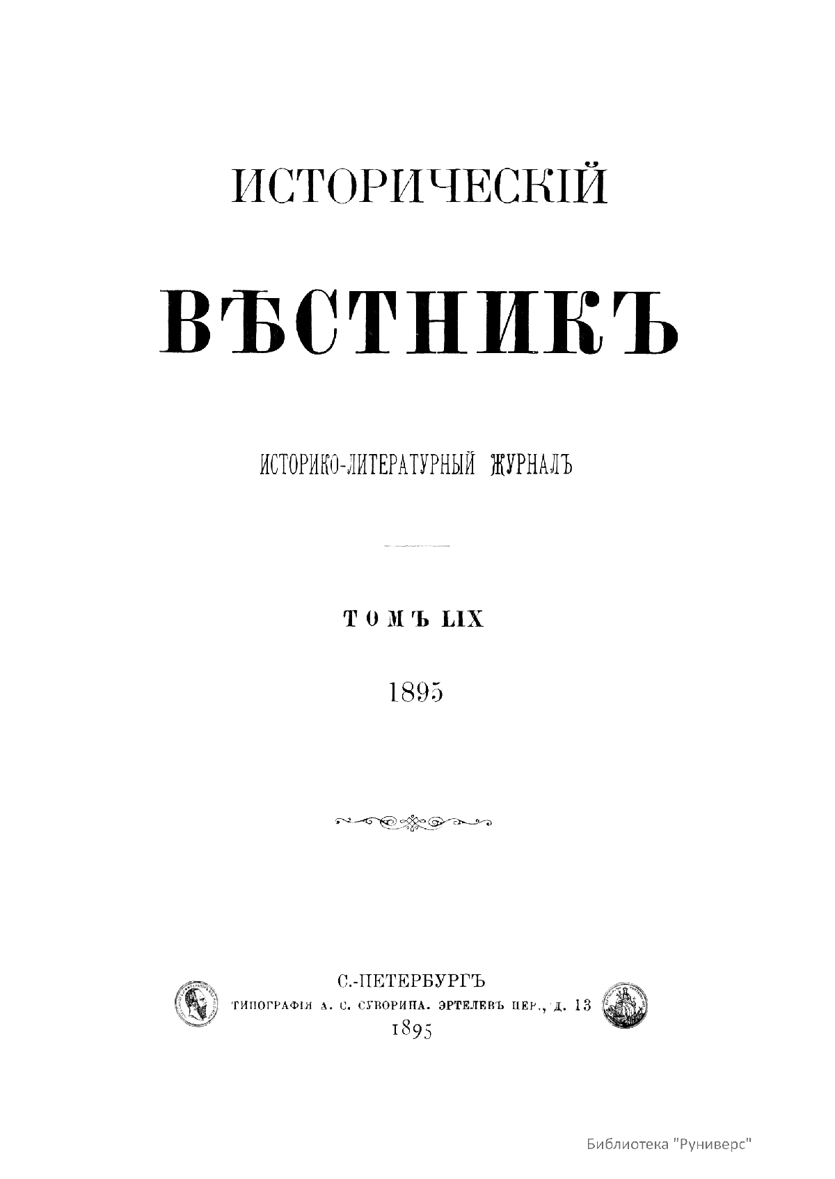 Исторический вестник. Историко-литературный журнал. Том LIX