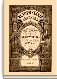 «Исторический вестник» - русский ежемесячный историко-литературный журнал. Издавался в Санкт-Петербурге с 1880-го по 1917 г. Журнал был основан А.С. Сувориным и С.Н. Шубинским с целью «знакомить читателей в живой, общедоступной форме с современным состоянием исторической науки и литературы в России и Европе». Вышло 150 тт. Каждый том состоял из трёх ежемесячных выпусков, имел свою нумерацию страниц, оглавление, список иллюстраций. Журнал приобрёл устойчивую популярность среди читателей, заняв прочное место в «триумвирате» русских исторических журналов наряду с «Русским архивом» и «Русской стариной». опережая их по количеству подписчиков. Отличием «Исторического вестника» было то, что он не помещал на своих страницах необработанных, сырых материалов. С другой стороны, журнал приближался по своему типу к журналам общелитературного образца, сочетая в себе коммерческий успех и доступное изложение материала.