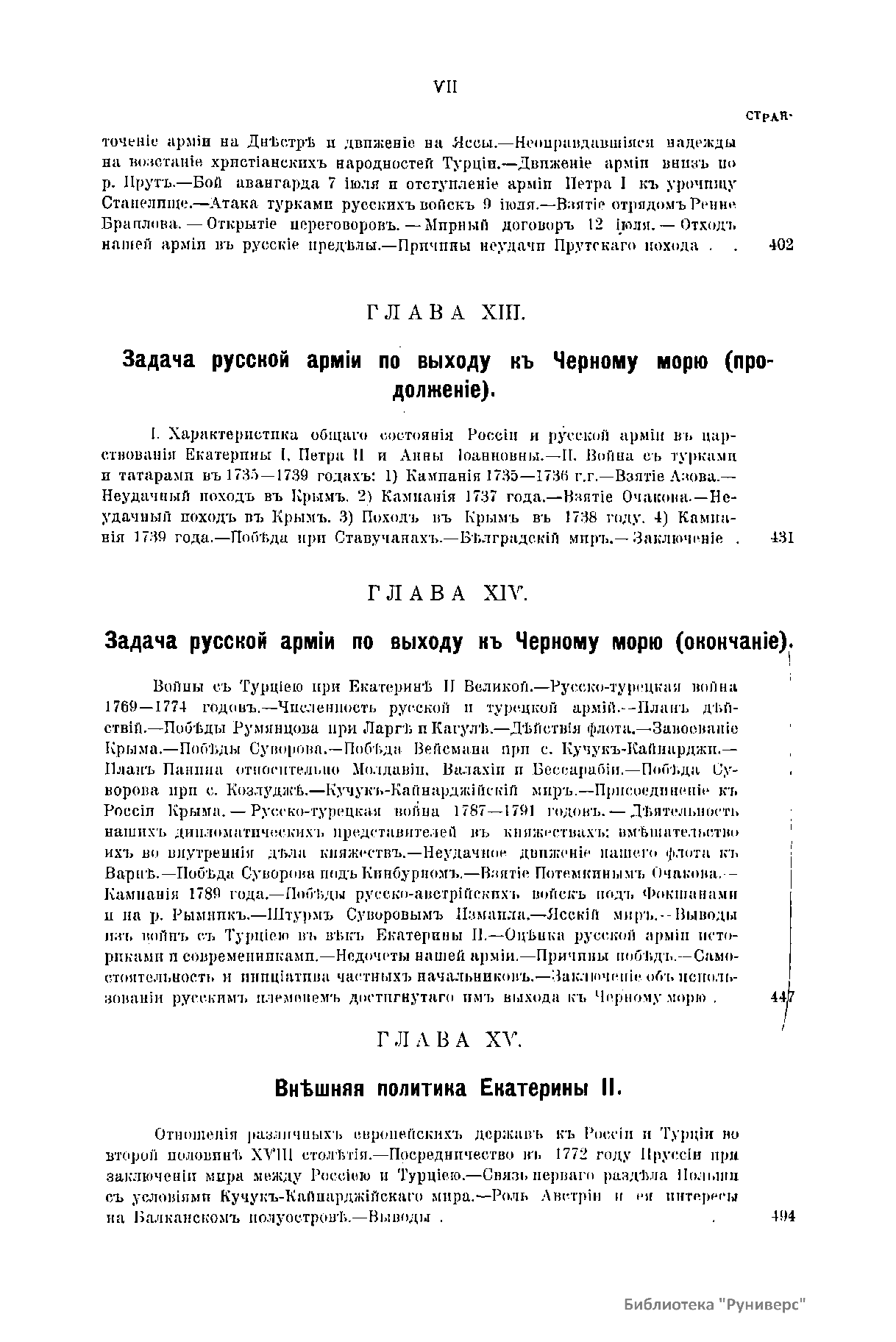 В настоящем издании автор рассуждает об исторических путях России и будущих задачах русской армии. В первом томе изложены задачи русской армии в XV – XVIII вв., выполненные ею в целях объединения русского племени и расширения пределов России до естественных рубежей: морей Балтийского, Черного и Каспийского, океанов Ледовитого и Восточного. Здесь говорится о том, какие русскому народу потребовались усилия, чтобы выйти победителем из борьбы с татарами, литовцами, поляками, ливонцами, шведами, турками и создать могущественное русское государство. По мнению автора, основными двигателями к подвигу во все века были: глубокая вера, преданность царю и любовь к родине. Во второй том вошли главным образом войны в начале XIX столетия с Наполеоном I и войны освободительного характера на Балканском полуострове. Главное внимание правительственной власти в это время ушло на устройство европейских дел, в том числе и на устройство на Балканском полуострове независимых государств. Автор считает, что такая политика, а также западные влияния пошли в ущерб русскому племени и способствовали отсталости России в материальном и духовном отношении от европейских государств. В третьем томе говорится о положении России к концу XIX в. и намечены главные задачи России и русской армии в XX в. Для того чтобы эти задачи были выполнены, необходимо, по мнению автора, вернуться к русской национальной политике.