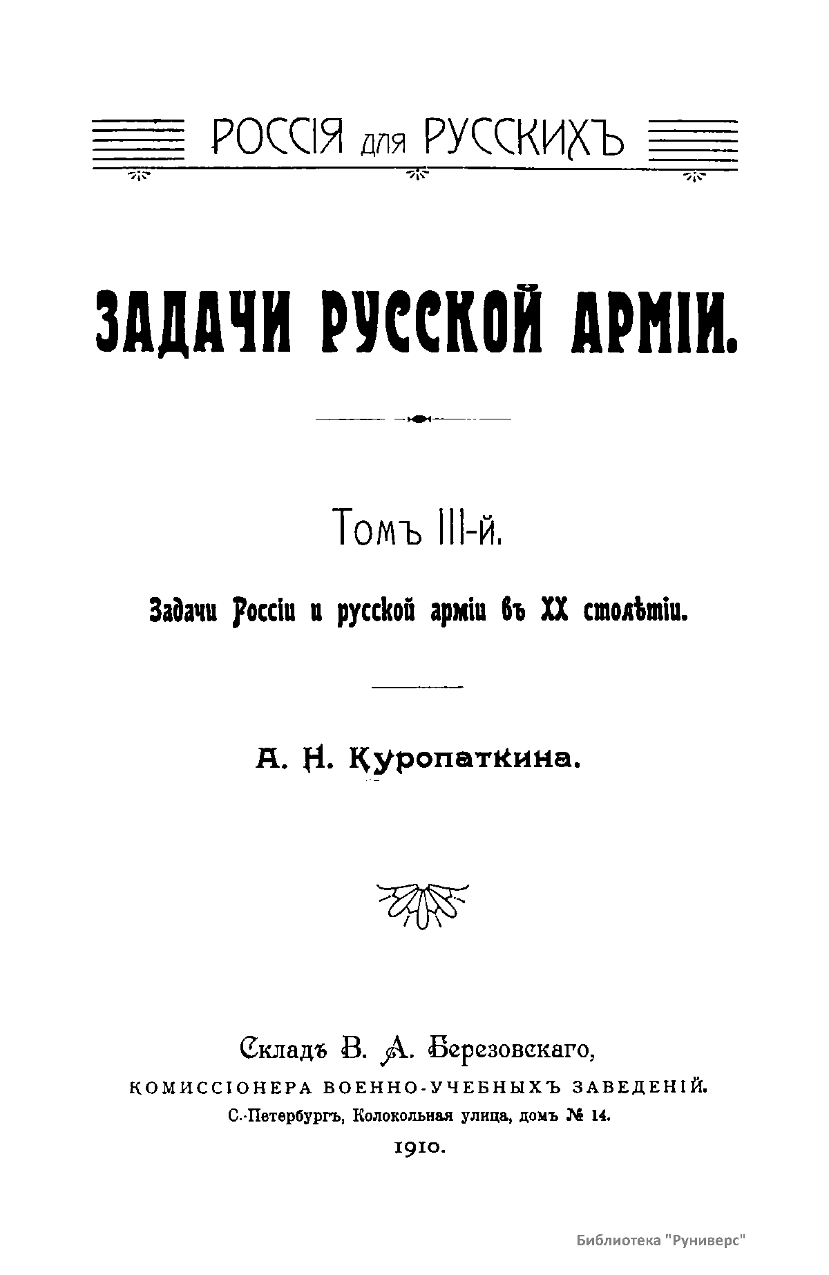 Том III-й. Задачи России и русской армии в XX столетии