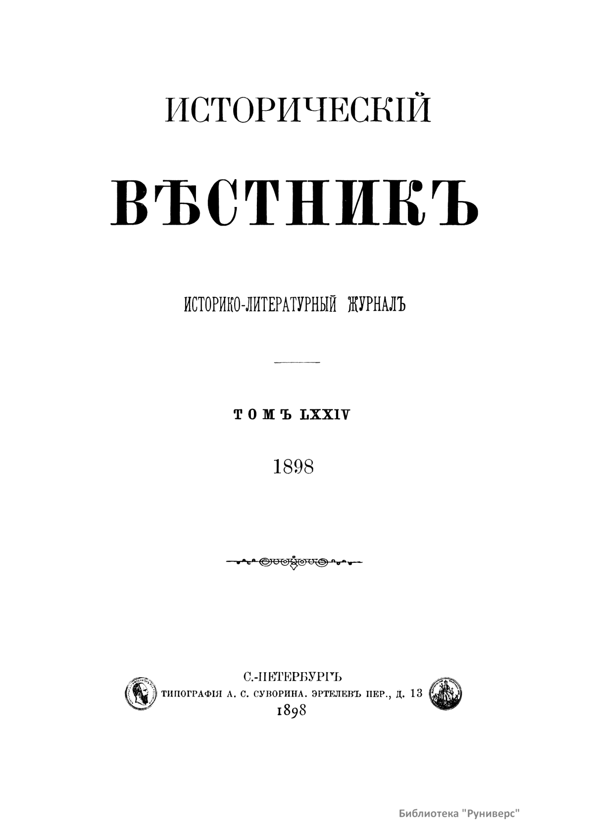 Исторический вестник. Историко-литературный журнал. Том LXXIV