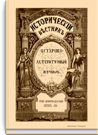«Исторический вестник» - русский ежемесячный историко-литературный журнал. Издавался в Санкт-Петербурге с 1880-го по 1917 г. Журнал был основан А.С. Сувориным и С.Н. Шубинским с целью «знакомить читателей в живой, общедоступной форме с современным состоянием исторической науки и литературы в России и Европе». Вышло 150 тт. Каждый том состоял из трёх ежемесячных выпусков, имел свою нумерацию страниц, оглавление, список иллюстраций. Журнал приобрёл устойчивую популярность среди читателей, заняв прочное место в «триумвирате» русских исторических журналов наряду с «Русским архивом» и «Русской стариной». опережая их по количеству подписчиков. Отличием «Исторического вестника» было то, что он не помещал на своих страницах необработанных, сырых материалов. С другой стороны, журнал приближался по своему типу к журналам общелитературного образца, сочетая в себе коммерческий успех и доступное изложение материала.