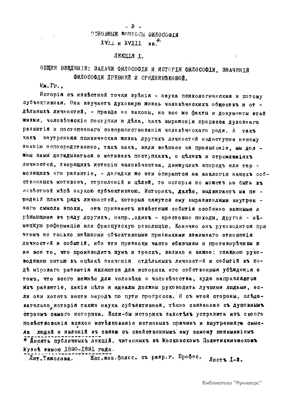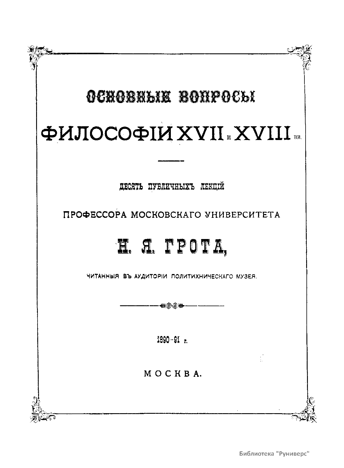 Основные вопросы философiи XVII и XVIII вв.