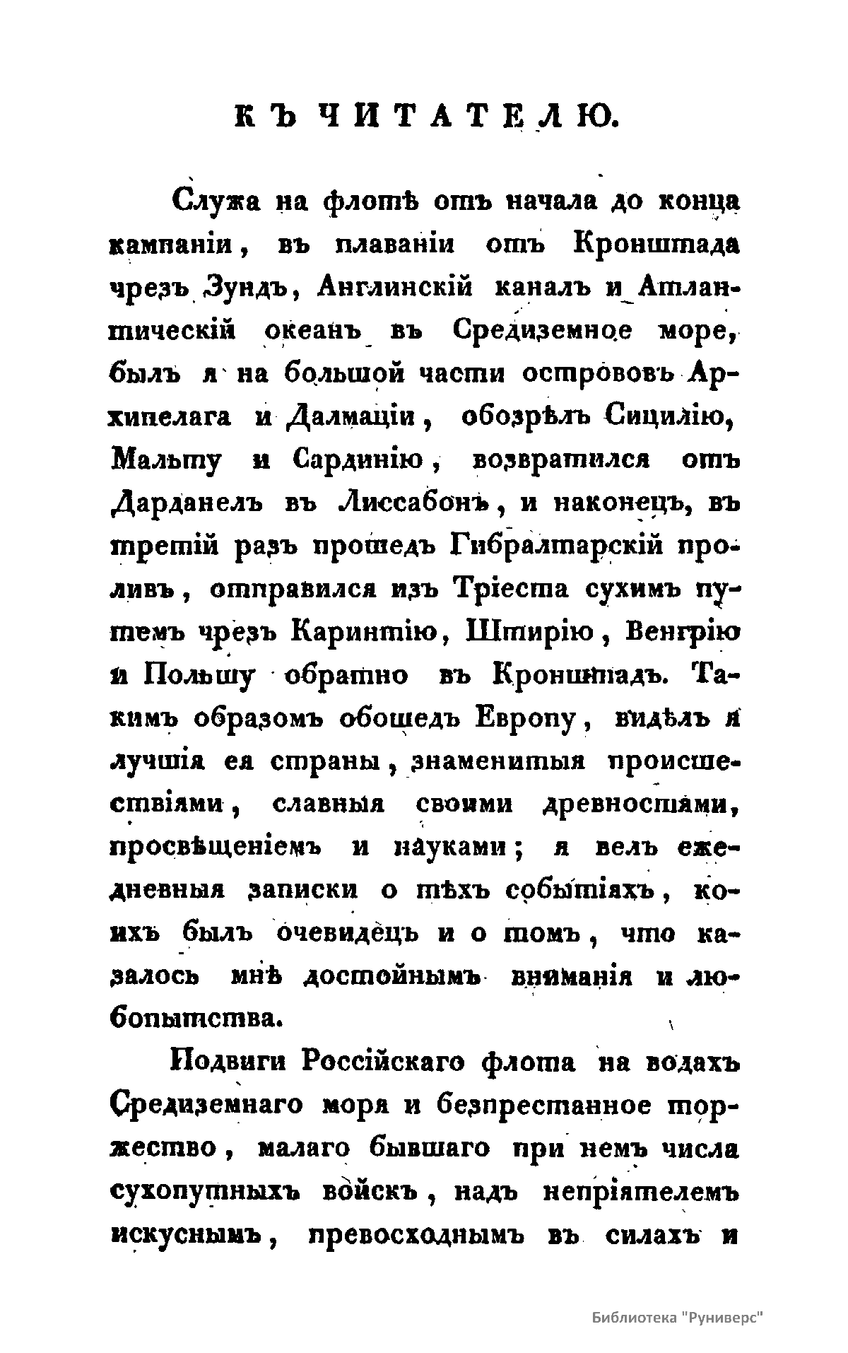 Записки морского офицера, в продолжении кампании на Средиземном море под начальством Вице-Адмирала Дмитрия Николаевича Сенявина от 1805 по 1810 год