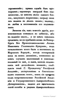 Записки морскаго офицера, въ продолженiи кампанiи на Средиземномъ морѣ подъ начальствомъ Вице-Адмирала Дмитрiя Николаевича Сенявина отъ 1805 по 1810 годъ. Часть первая
