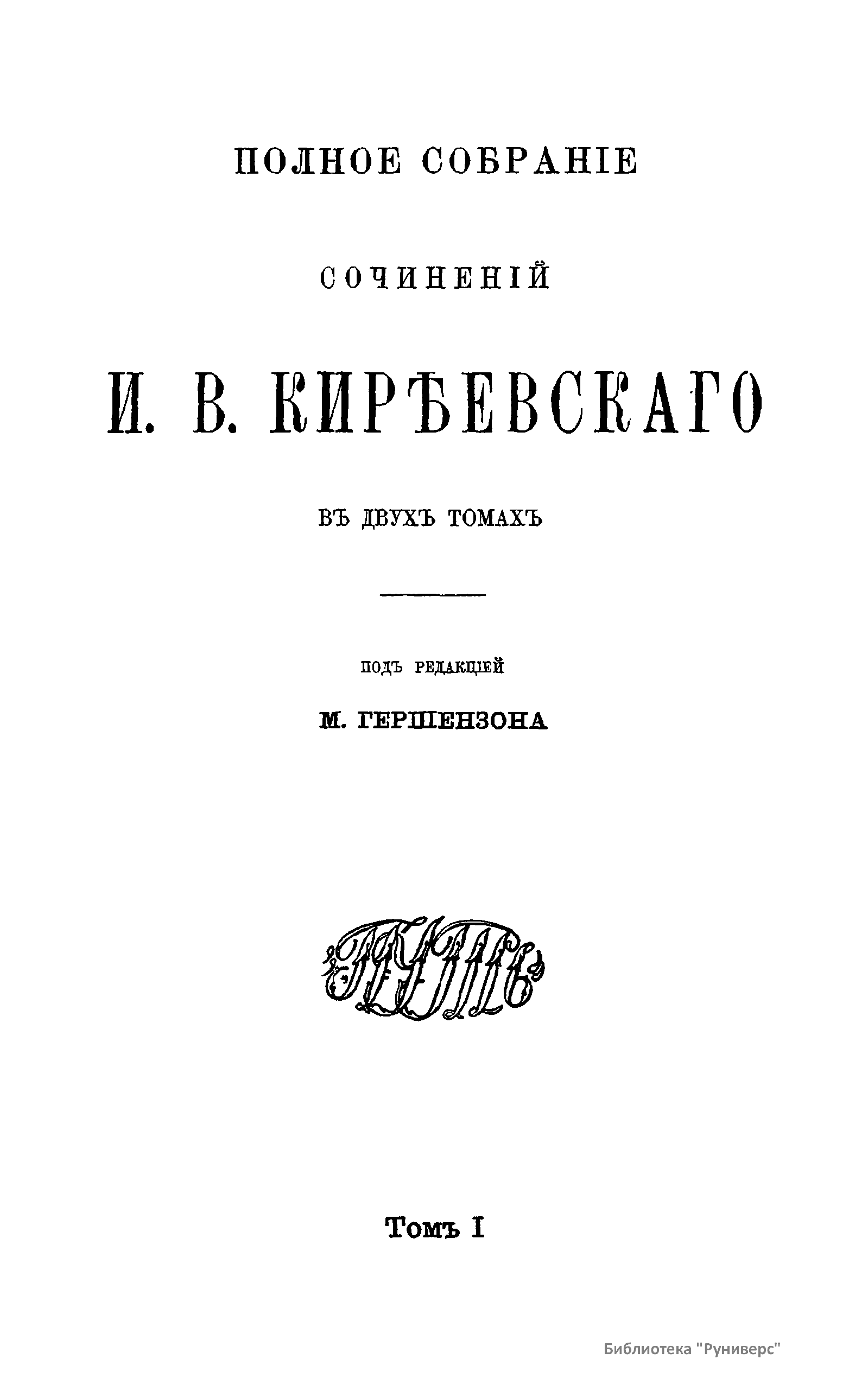 Полное собранiе сочиненiй И.В. Кирѣевскаго. Томъ I