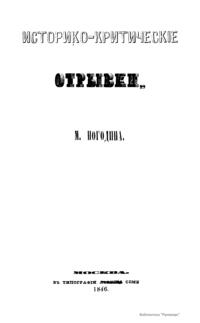 Сборник статей Погодина М.П. по русской истории, написанных им для разных журналов. Оглавление находится в конце издания.