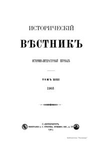 Исторический вестник. Историко-литературный журнал. Том XCIII