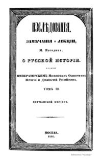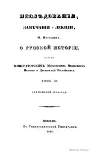 Изслѣдованiя, замѣчанiя и лекцiи о русской исторiи. Томъ III. Норманскiй перiодъ