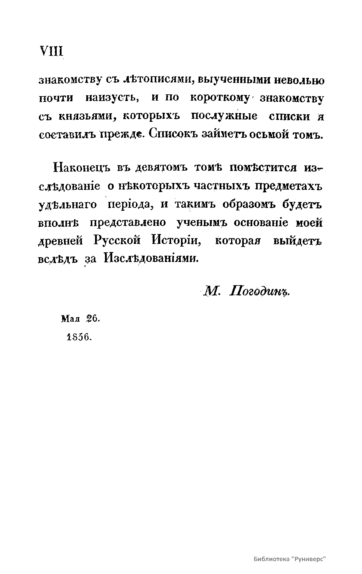«На пользу науке, на славу Отечества, к чести своего времени» Первый том посвящен источникам древнейшей русской истории и преимущественно Несторовой летописи. В его состав вошло уже напечатанное прежде исследование, к которому присоединены замечания о прочих источниках: Русской правде, церковных уставах, северных сагах и пр. Приведен разбор всех мнений о Несторовой летописи. Предмет второго тома – происхождение Варягов-Руси. Здесь помещено первое рассуждение автора об этом предмете, исправленное и дополненное новыми исследованиями и открытиями. Автор разбирает также новые мнения о происхождении Варягов-Руси. В этом томе опубликованы лекции о славянах, в которых заключается краткое извлечение о Славянских Древностях Шафарика. Третий том содержит исследования и замечания о событиях первого периода, который автор называет Варяжским, или Норманским (862 – 1054), с объяснением всех мест Несторовой летописи, и сравнение русского начала с началом прочих западных государств, где показан источник различия между их последующими историями. Четвертый том посвящен приготовительным и общим исследованиям: об источниках для удельного периода, т.е. о летописях и их хронологии, о родах князей, о пределах и городах Ярославовых княжеств, о праве великокняжеского наследства, об отношении великого князя к прочим князьям, об отношении их между собой. В пятом томе исследуются междуусобные войны князей и их сношения, внешние войны и внешние сношения. В шестом томе автор приводит азбучный список русских князей до монгольского ига; список русских князей до монгольского ига по степеням и старшинству; список князей по княжествам и уделам. В седьмом томе автор рассуждает о князе, его дружине, боярах и отроках; о городах и их обитателях; о волостях и их отношении к городам; о военном деле; о праве; торговле; церкви, грамотности и образовании.