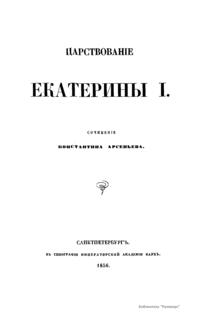 Небольшое исследование царствования Екатерины I (1725 – 1727). Автор показывает, что во все время своего царствования Екатерина следовала по пути, указанному России великим ее преобразователем Петром I.