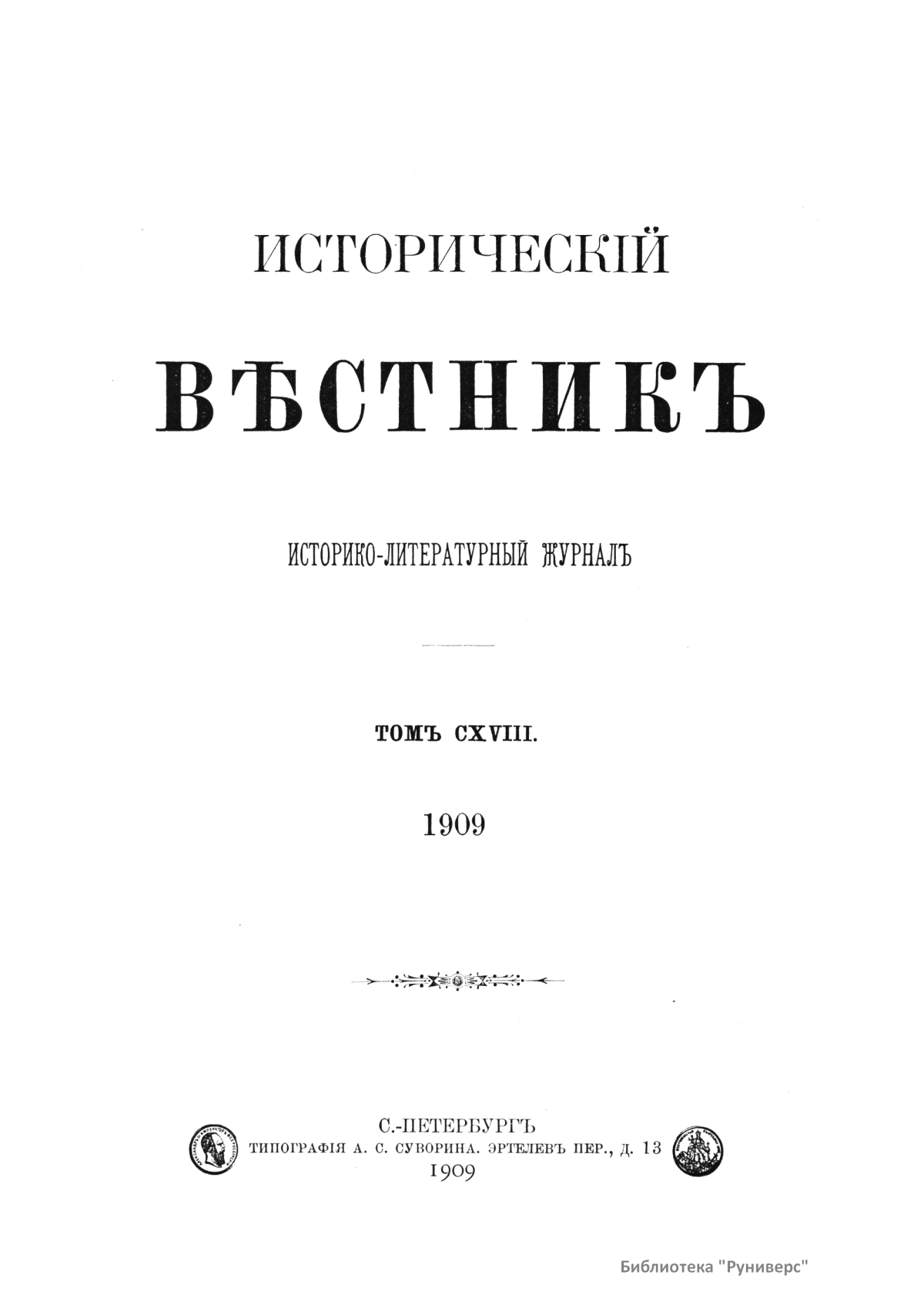 Исторический вестник. Историко-литературный журнал. Том CXVIII