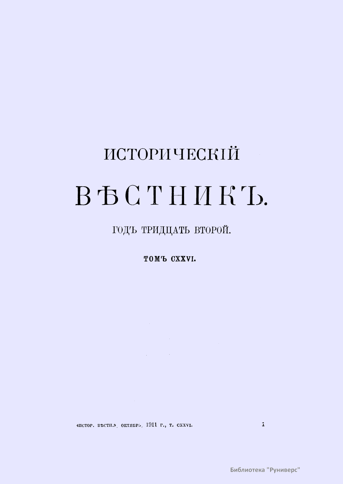 Исторический вестник. Историко-литературный журнал. Том CXXVI