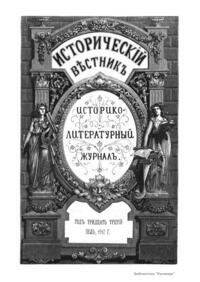 «Исторический вестник» - русский ежемесячный историко-литературный журнал. Издавался в Санкт-Петербурге с 1880-го по 1917 г. Журнал был основан А.С. Сувориным и С.Н. Шубинским с целью «знакомить читателей в живой, общедоступной форме с современным состоянием исторической науки и литературы в России и Европе». Вышло 150 тт. Каждый том состоял из трёх ежемесячных выпусков, имел свою нумерацию страниц, оглавление, список иллюстраций. Журнал приобрёл устойчивую популярность среди читателей, заняв прочное место в «триумвирате» русских исторических журналов наряду с «Русским архивом» и «Русской стариной». опережая их по количеству подписчиков. Отличием «Исторического вестника» было то, что он не помещал на своих страницах необработанных, сырых материалов. С другой стороны, журнал приближался по своему типу к журналам общелитературного образца, сочетая в себе коммерческий успех и доступное изложение материала.