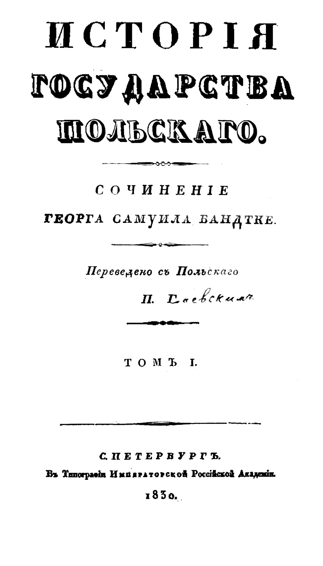 Принимая во внимание, что переводчик к моменту подготовки издания к печати служил старшим цензором С.-Петербургского цензурного комитета, разумно предположить, что это издание увидело свет именно благодаря выбранному Бандтке нейтральному, объективистскому стилю изложения польской истории, свободному от эмоций и политизированных оценок, обычно свойственных польской историографии того времени.
