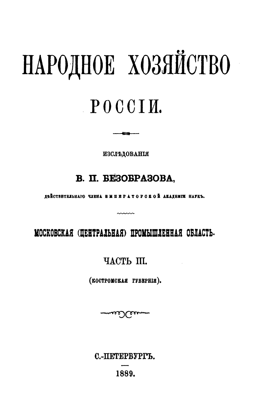 Народное хозяйство России. Московская (центральная) промышленная область. Часть III (Костромская губерния)