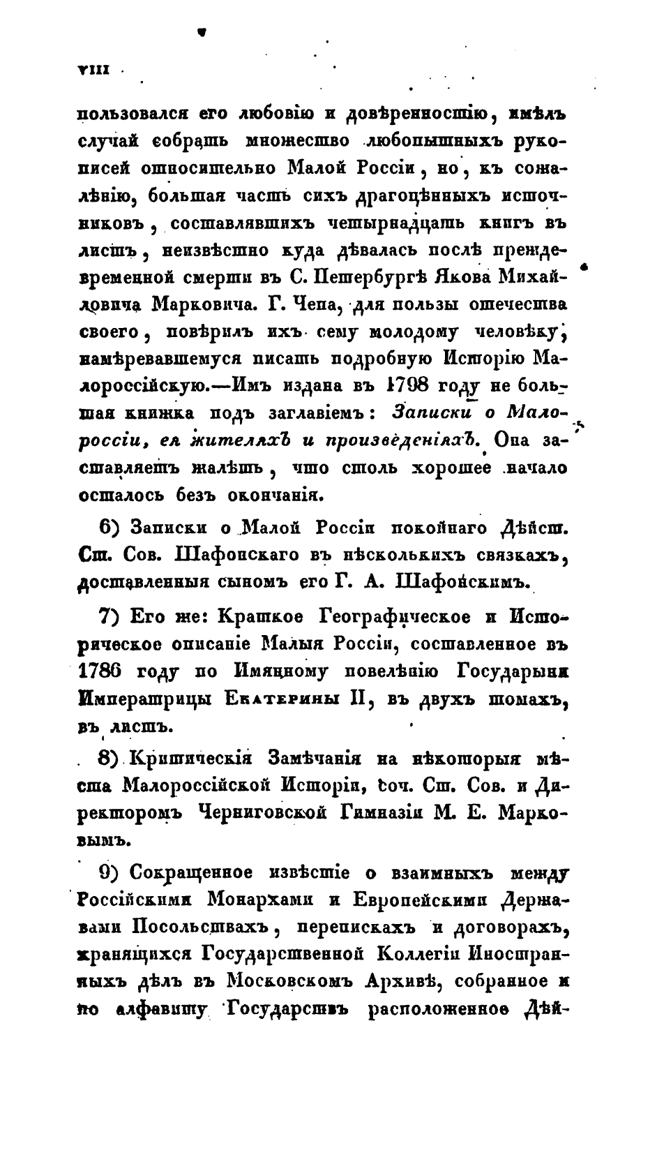 Изданный труд, принесший автору широкую популярность и научное признание. «История Малой России», к которой автор на протяжении все жизни возвращался не раз, выпуская дополненные и уточненные переиздания дает «верный перечень исторических фактов» и по сей день является одной из лучших книг, показывающих цельную историю Малороссии.