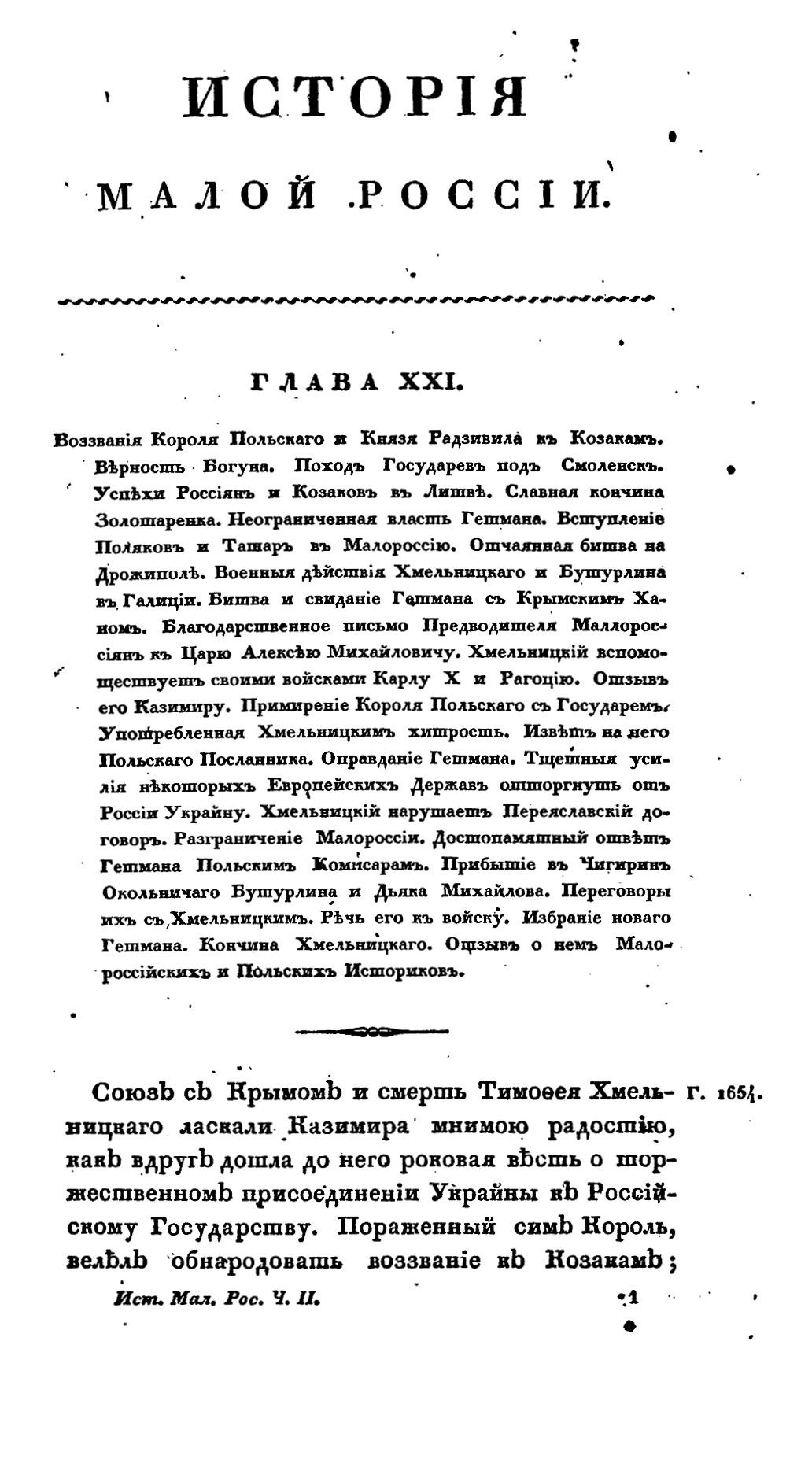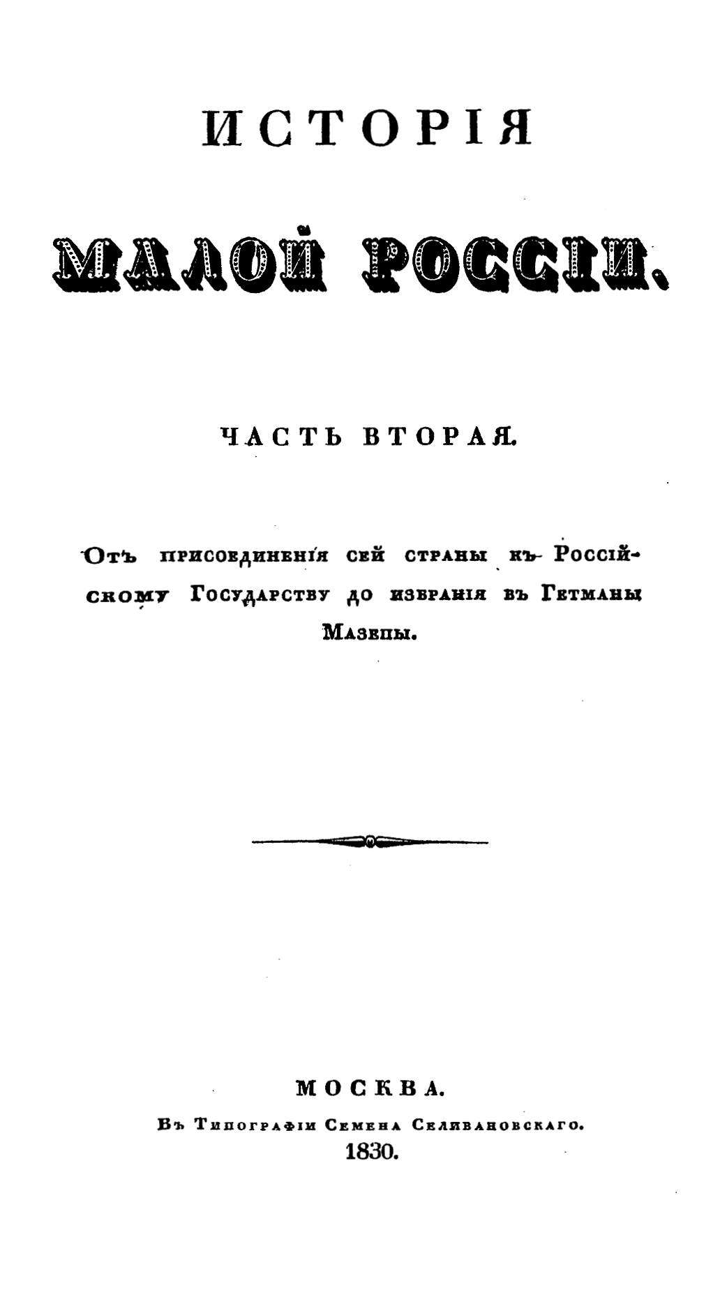 История Малой России. Часть Вторая. От присоединения сей страны к Российскому Государству до избрания в Гетманы Мазепы
